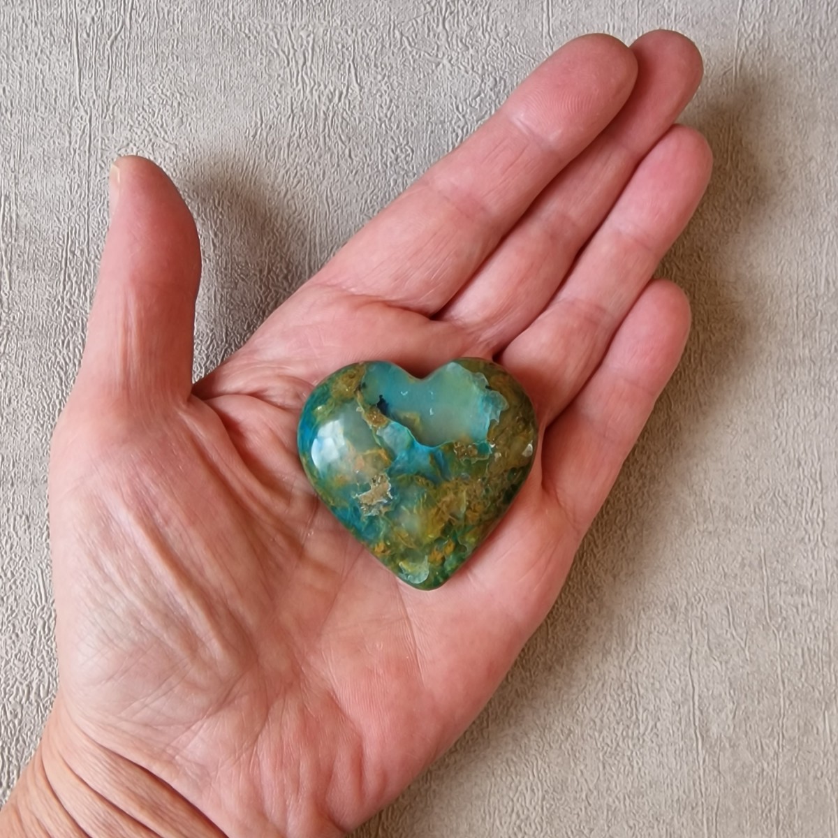 Coeur en Opale Bleue Turquoise des Andes. Lithothérapie : favorise la paix intérieure, libère la communication et la créativité.(CR113-1)