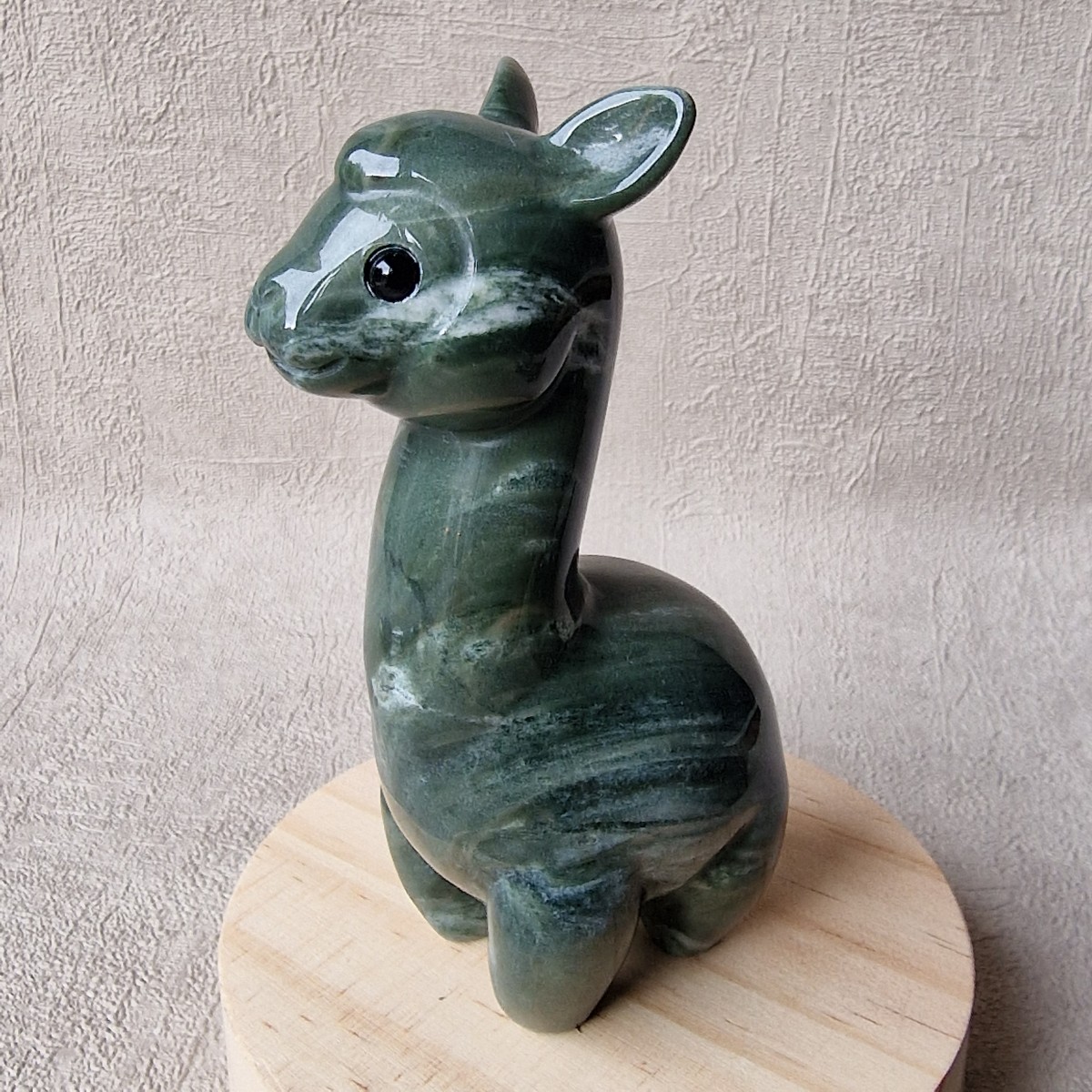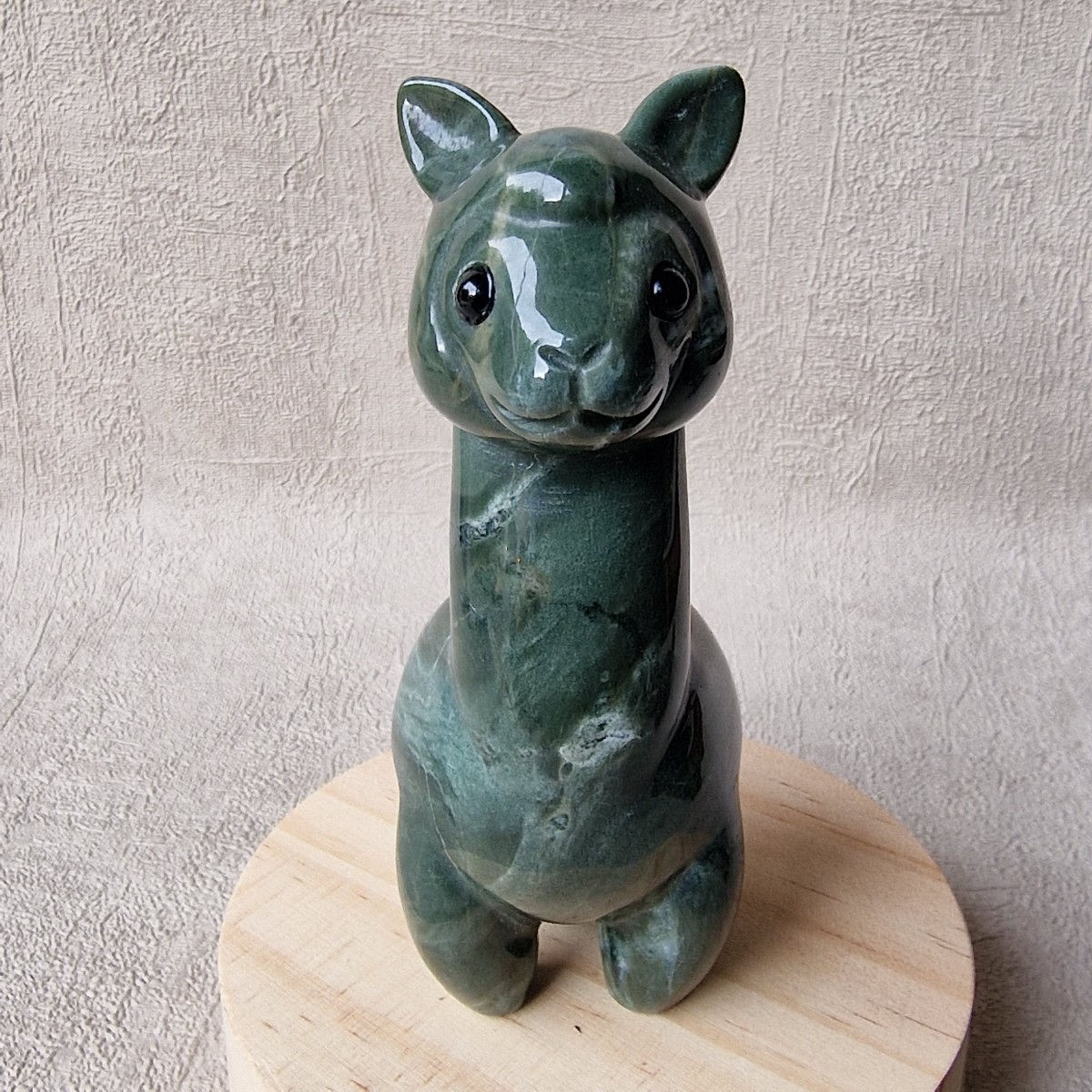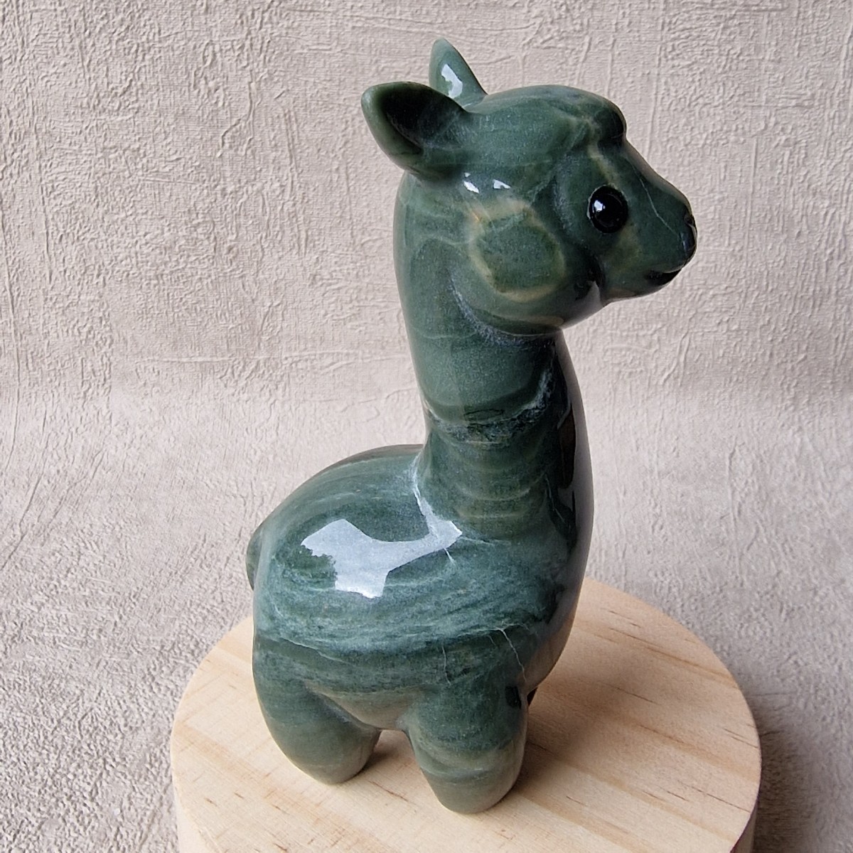 Lama en jaspe vert. Le lama représente la communication avec le divin et la nature, la persévérance et l'abondance.(AN09-1)