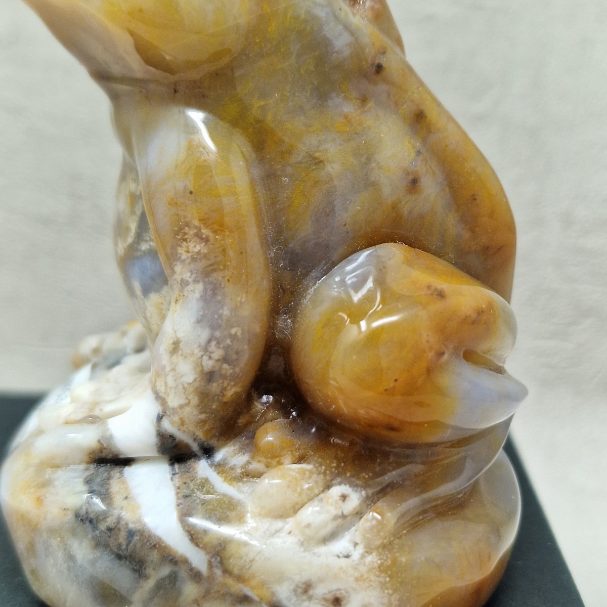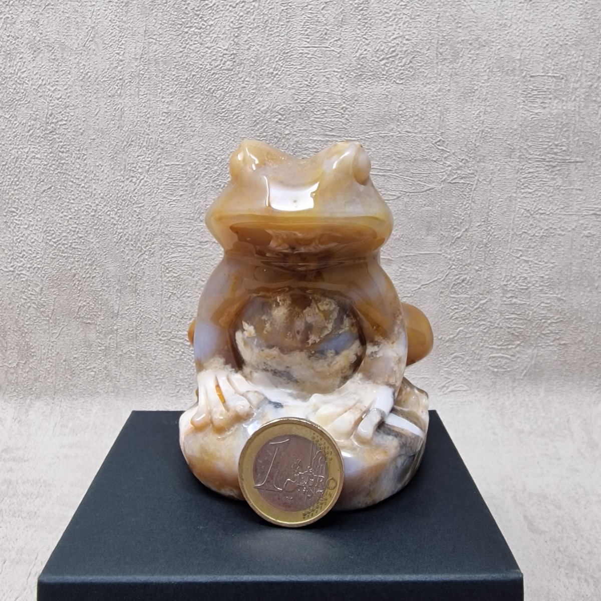 Grenouille en agate. La grenouille représente la transformation, la renaissance, la fertilité, la chance et la purification.(AN15-3)