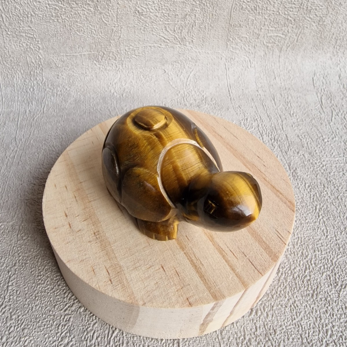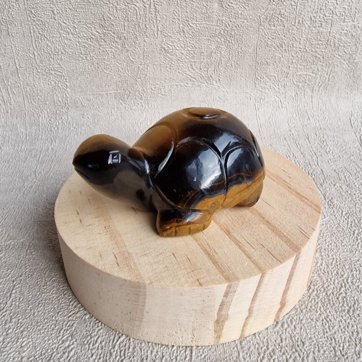Tortue en oeil de tigre. La tortue symbolise la longévité, la sagesse, la résilience et la paix. L'oeil de tigre protège et rétablit la confiance en soi.(FG42-2)