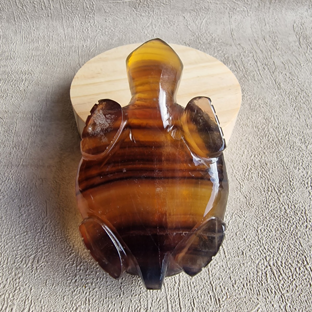 Tortue taillée dans la fluorite de +/- 8,3 cm. Symbolique : la tortue en fluorite c'est en quelque sorte la "Patience organisée".(FG39-6)