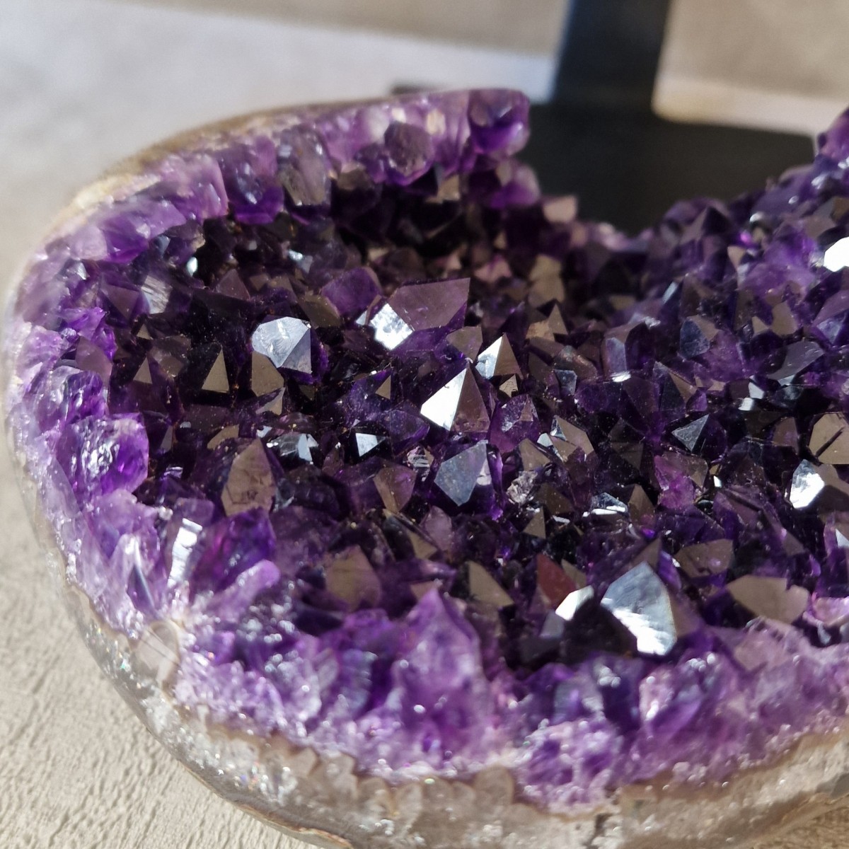 L’améthyste dans notre environnement : Dans la maison, elle purifie l’atmosphère, maintient une vitalité positive et distille amour et bonheur, c’est pourquoi elle trouve sa place un peu partout, mais idéalement dans le séjour ou près de la porte d’entrée principale de l’habitation. Laissez libre court à vos envies mais surtout pensez à la mettre à l’abri du soleil qui ternirait sa couleur. Dans la chambre, elle dissipera les cauchemars et suscitera les rêves intuitifs. Associée au quartz rose et placée sur la table de nuit ou sous l’oreiller, elle aide les hyperactifs et les hypertendus à trouver le sommeil. Sur le lieu de travail, elle calme ou stimule selon les circonstances et favorise l’esprit d’équipe.