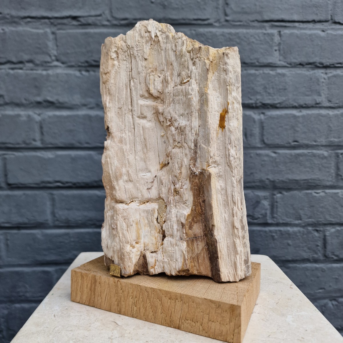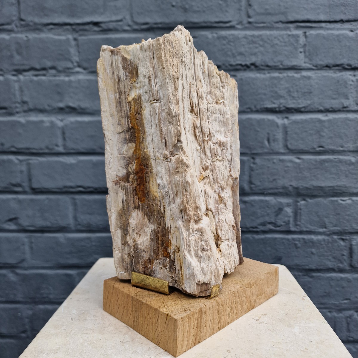Bois fossile belge monté sur socle en chêne est à la fois un témoignage d'histoire et un objet de décoration atypique. Le bois fossile peut être dissocié de son support sans difficulté.
