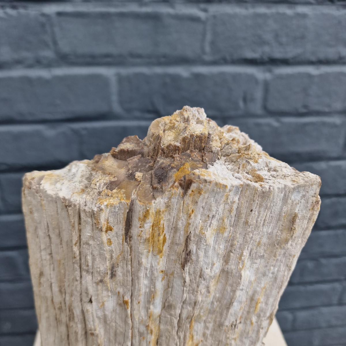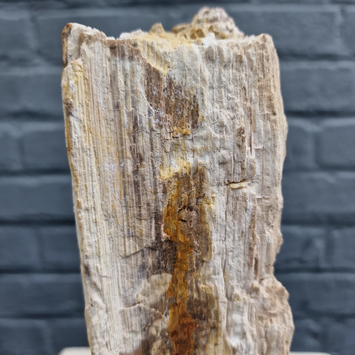Bois fossile belge, Sequoiites primaeva, +/- 2,756 kg, +/- 21 X 13 X 7,5 cm + socle chêne.(BT158-3)