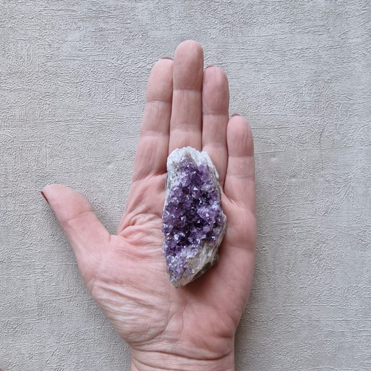 Petite druse d'améthyste brésilienne. Lithothérapie : l'améthyste symbolise la sérénité, la sagesse et la spiritualité.(DR20-2)