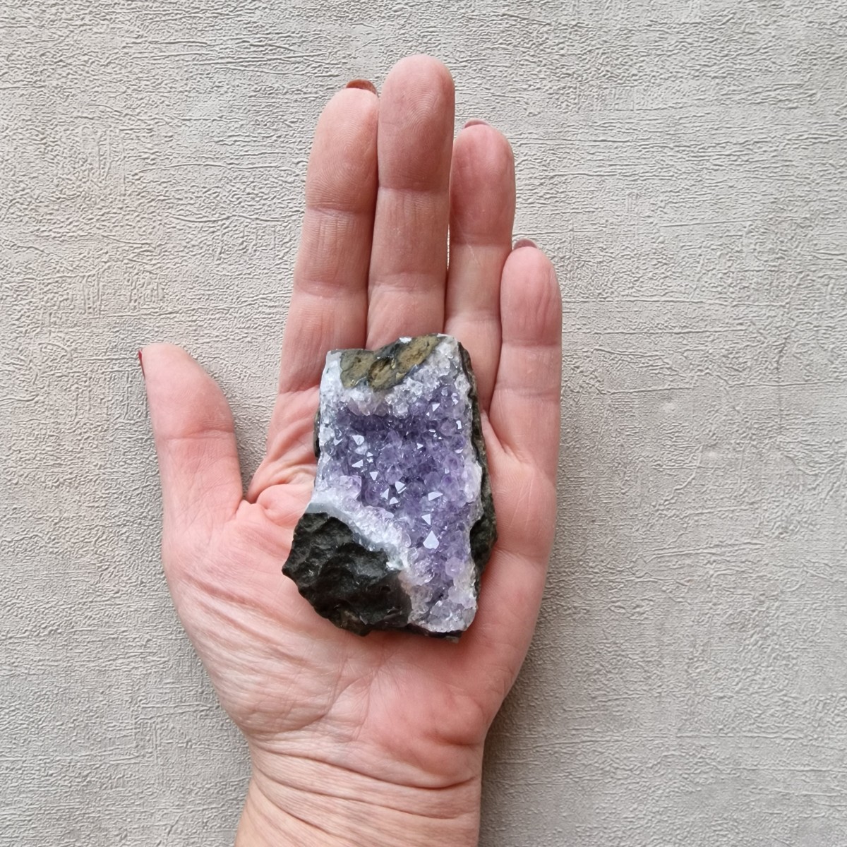Petite druse d'améthyste brésilienne. Lithothérapie : l'améthyste symbolise la sérénité, la sagesse et la spiritualité.(DR20-3)