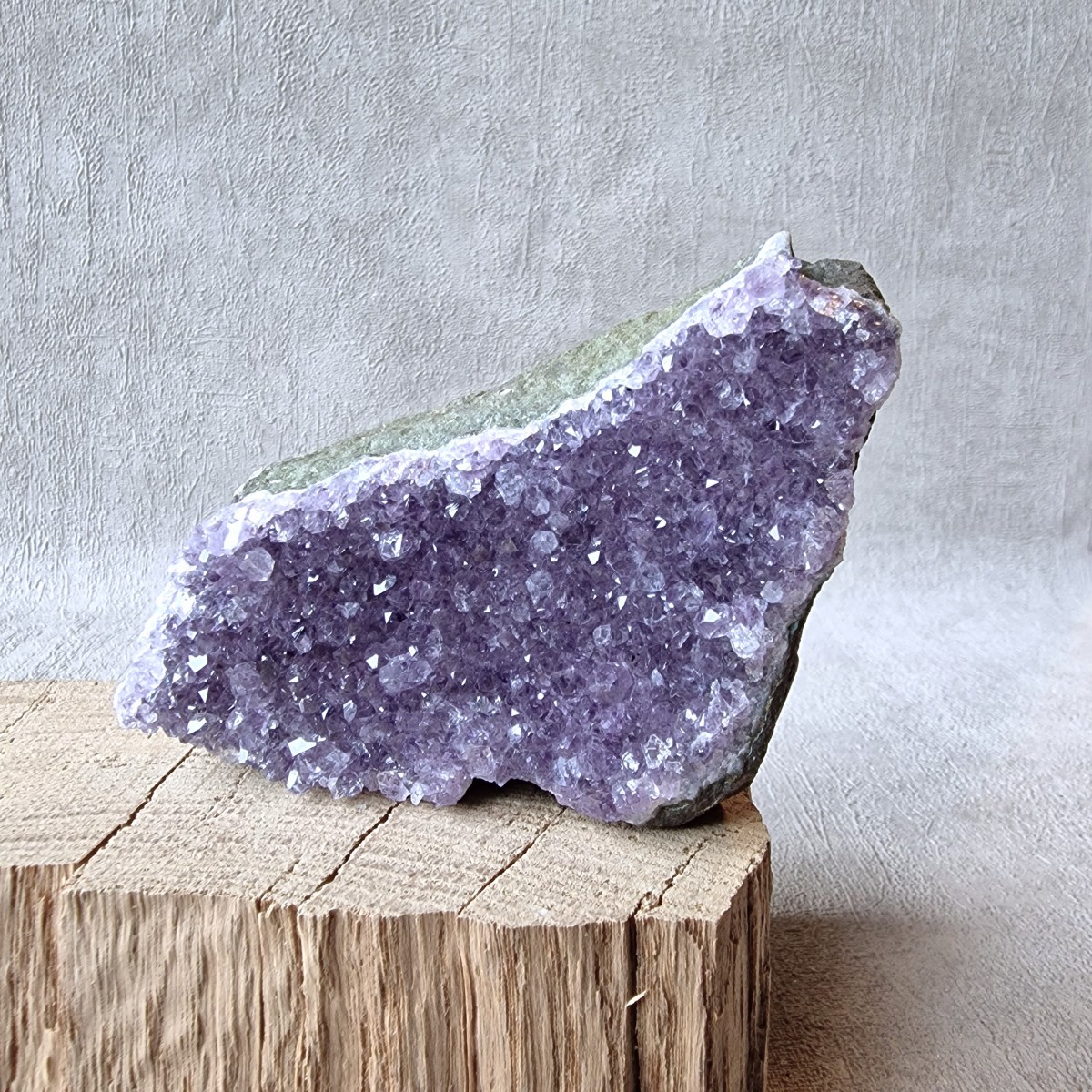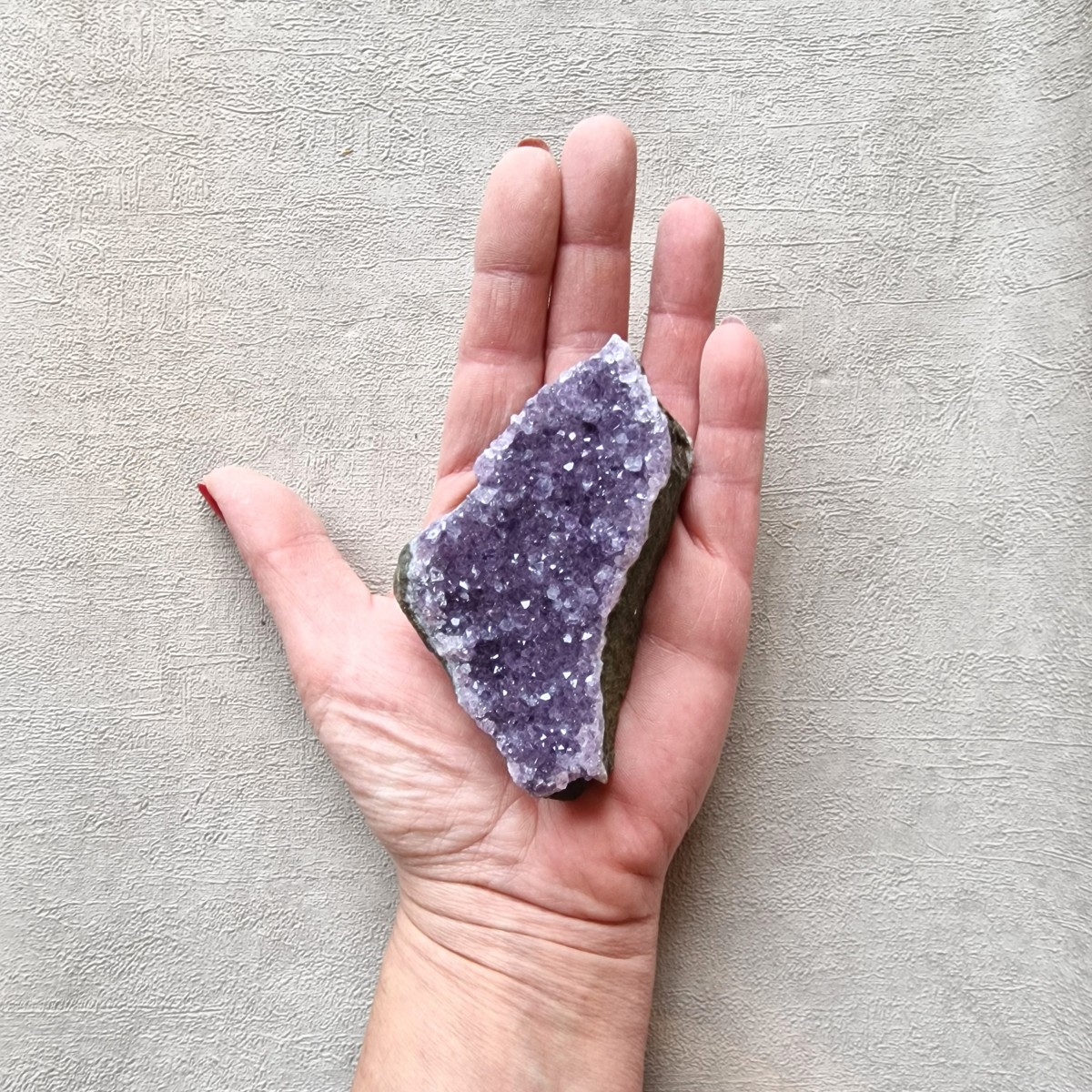 Petite druse d'améthyste brésilienne. Lithothérapie : l'améthyste symbolise la sérénité, la sagesse et la spiritualité.(DR20-10)