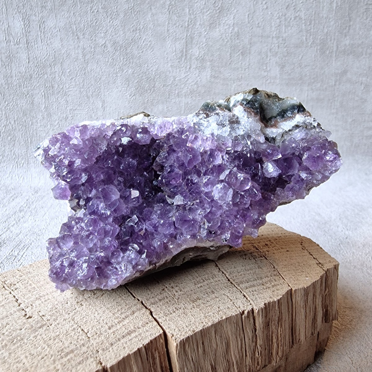 Petite druse d'améthyste brésilienne. Lithothérapie : l'améthyste symbolise la sérénité, la sagesse et la spiritualité.(DR20-12)
