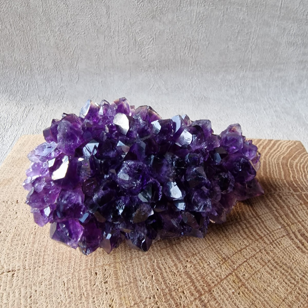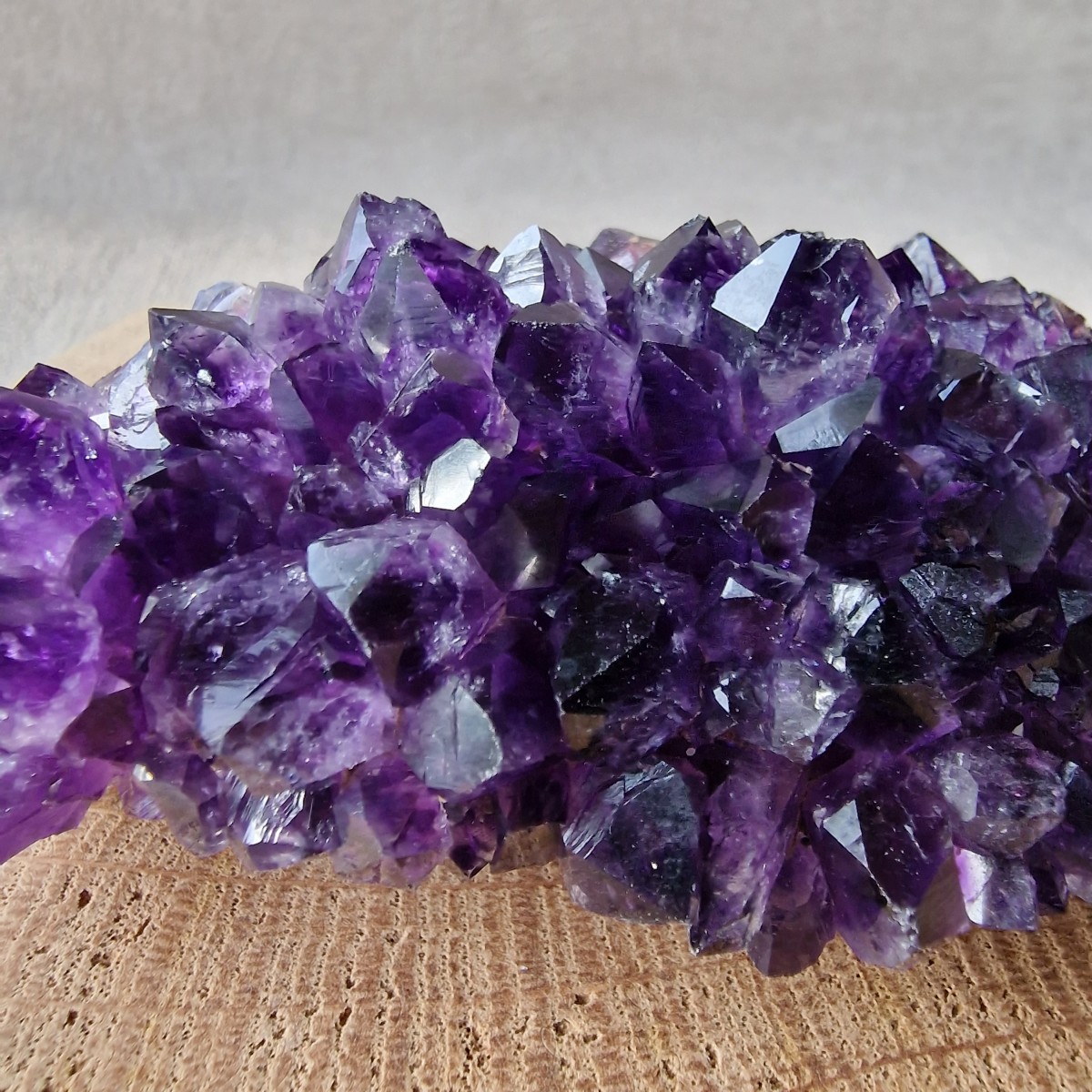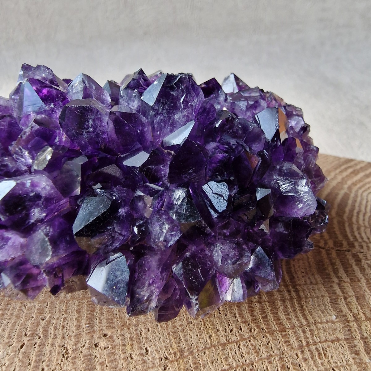 Druse d'améthyste d'Uruguay de couleur intense. Lithothérapie : l'améthyste symbolise la sérénité, la sagesse et la spiritualité.(DR33-1)