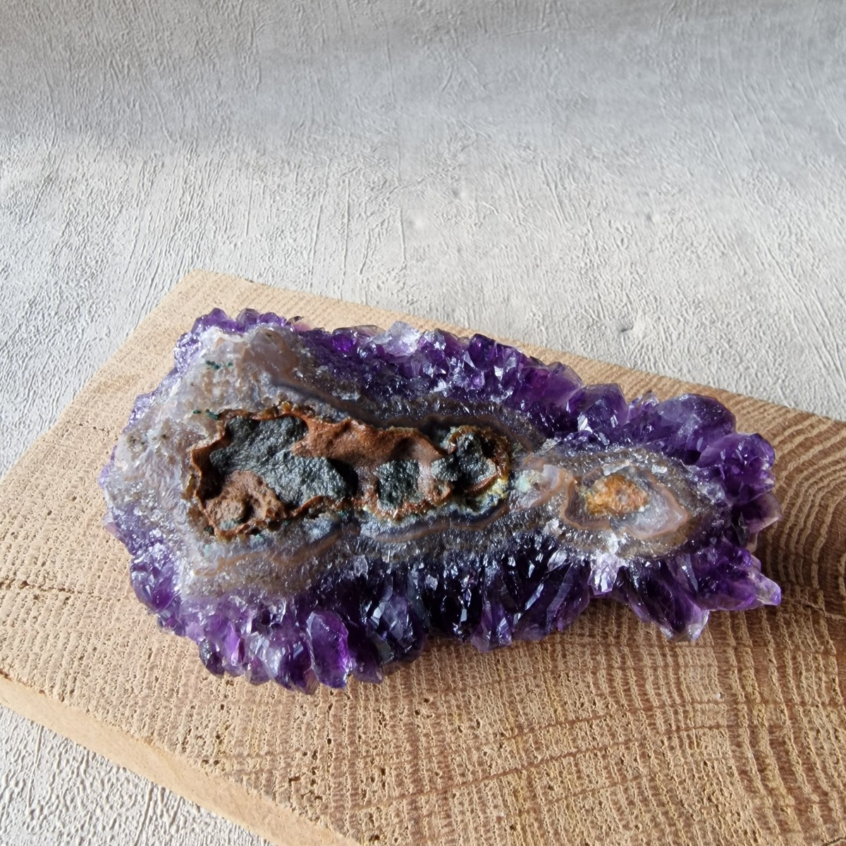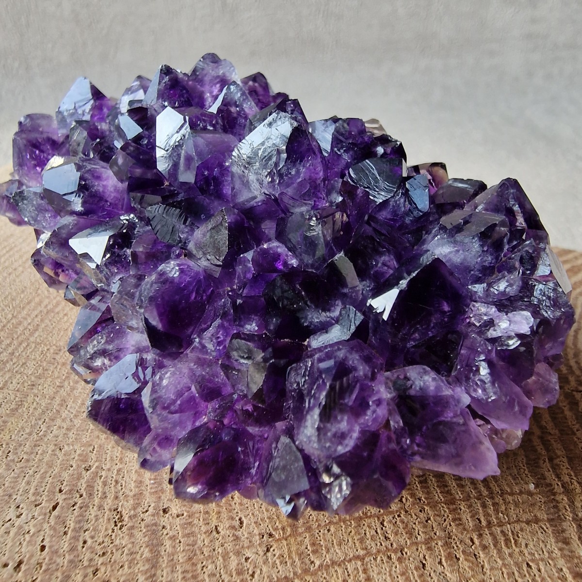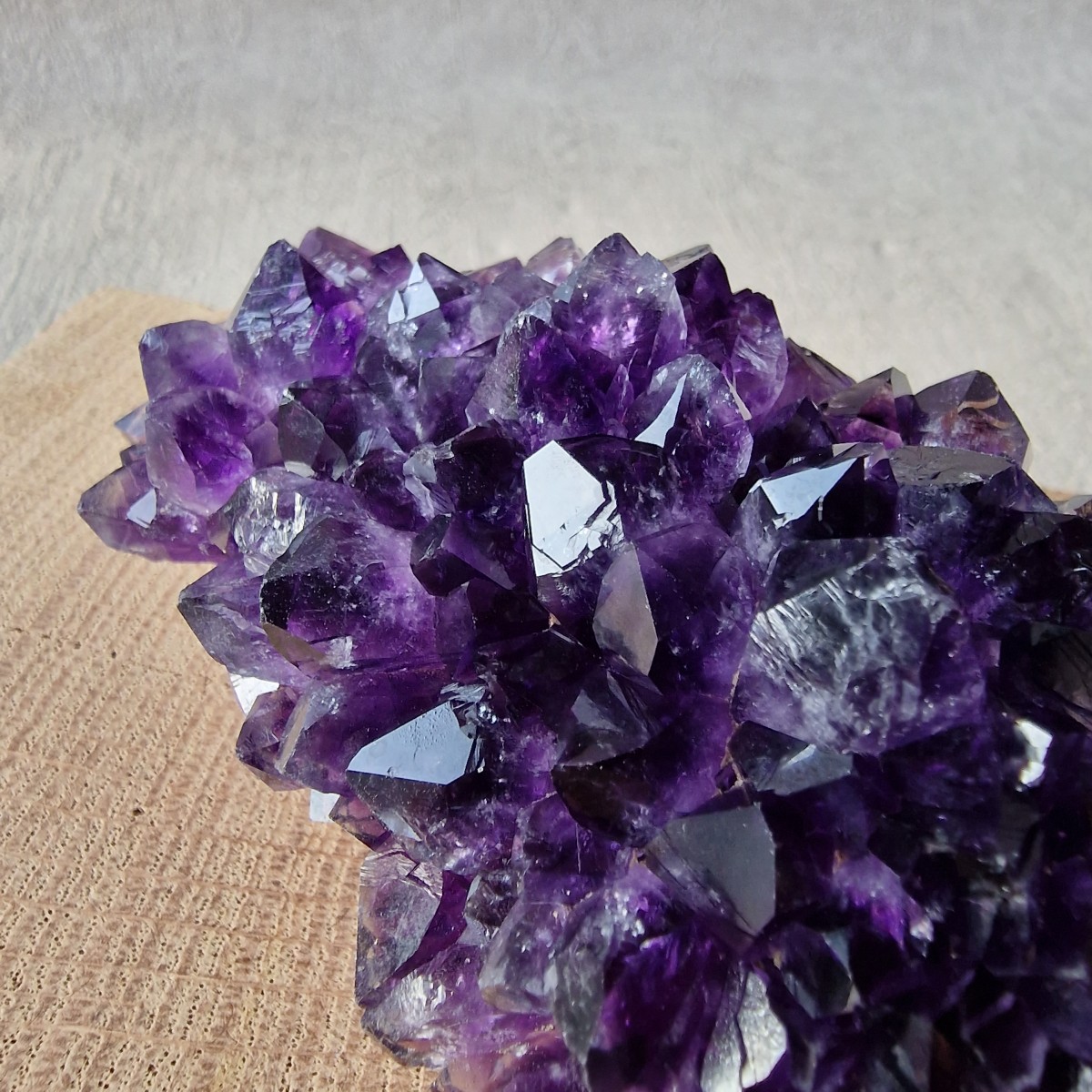 Druse d'améthyste d'Uruguay de couleur intense. Lithothérapie : l'améthyste symbolise la sérénité, la sagesse et la spiritualité.(DR33-1)