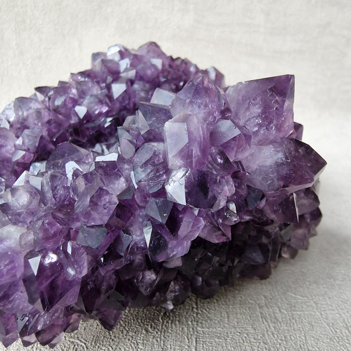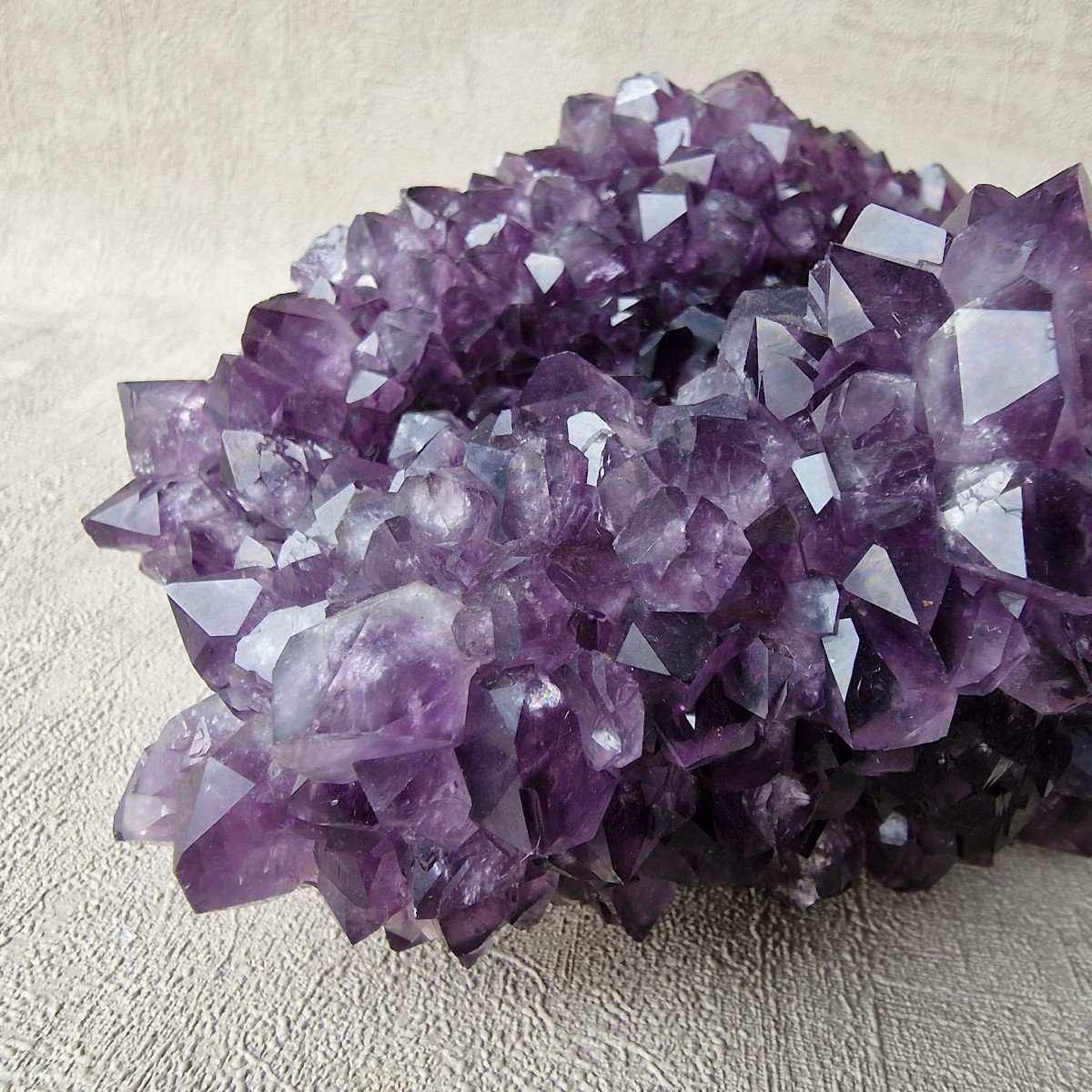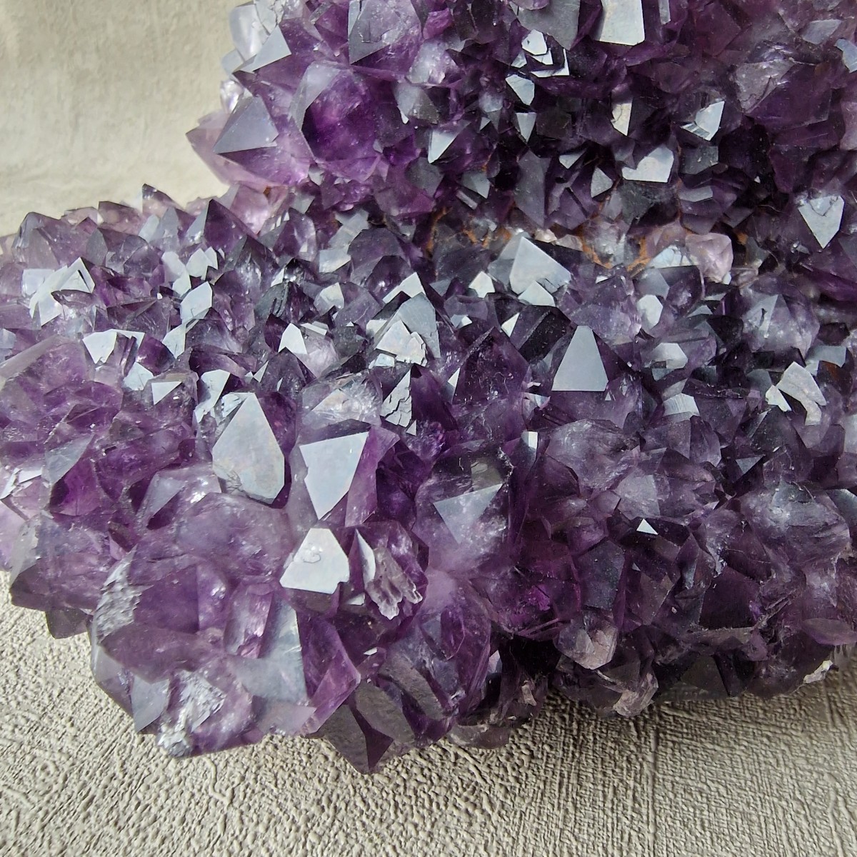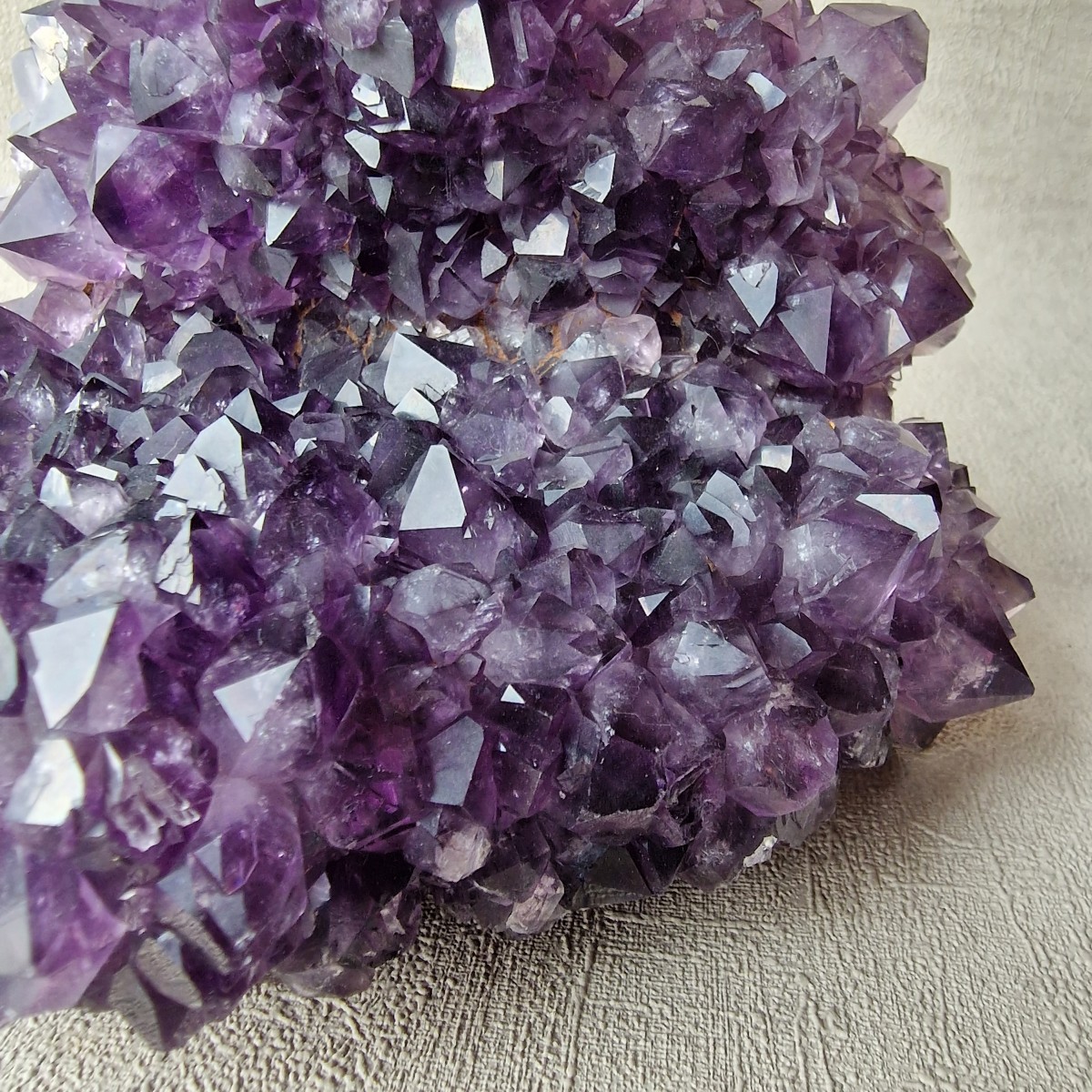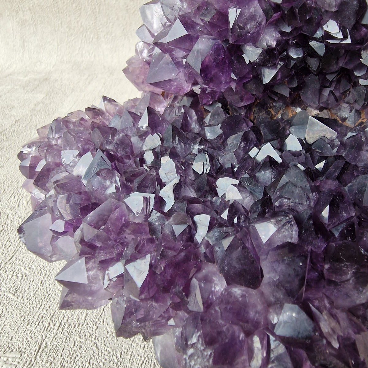 Druse d'améthyste d'Uruguay de couleur intense. Lithothérapie : l'améthyste symbolise la sérénité, la sagesse et la spiritualité.(DR33-4)