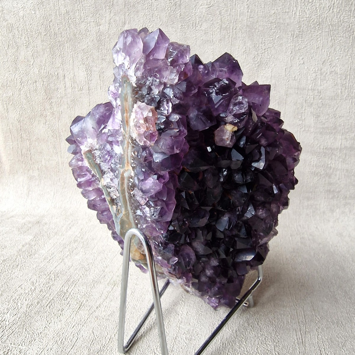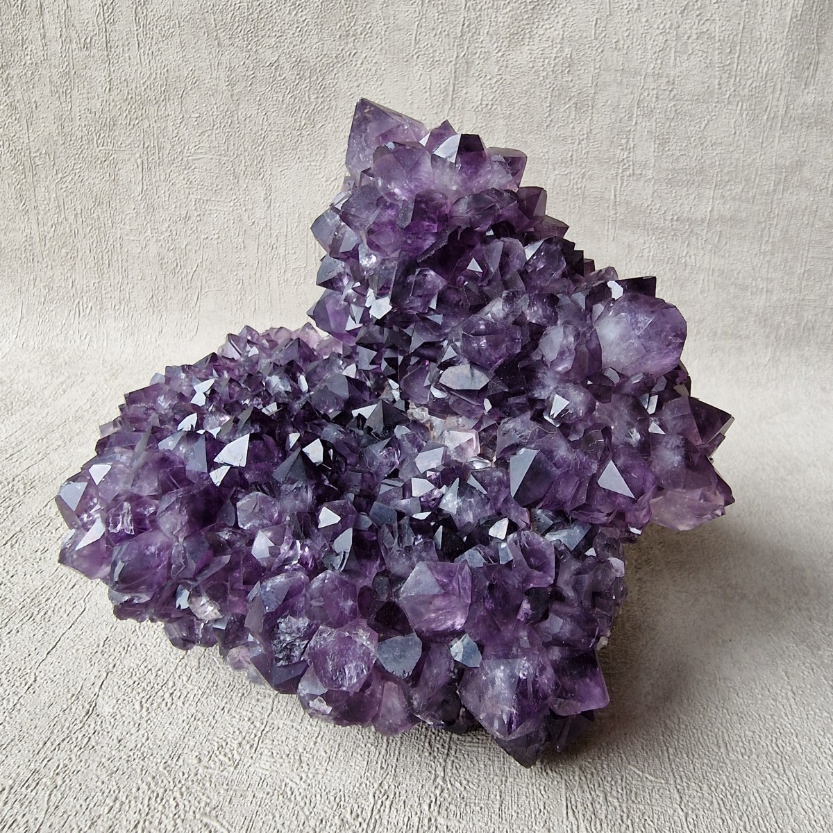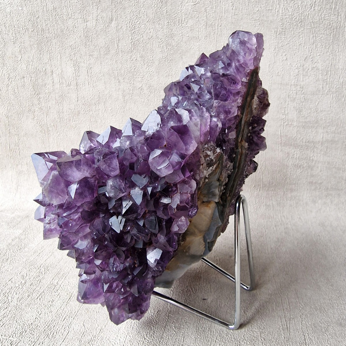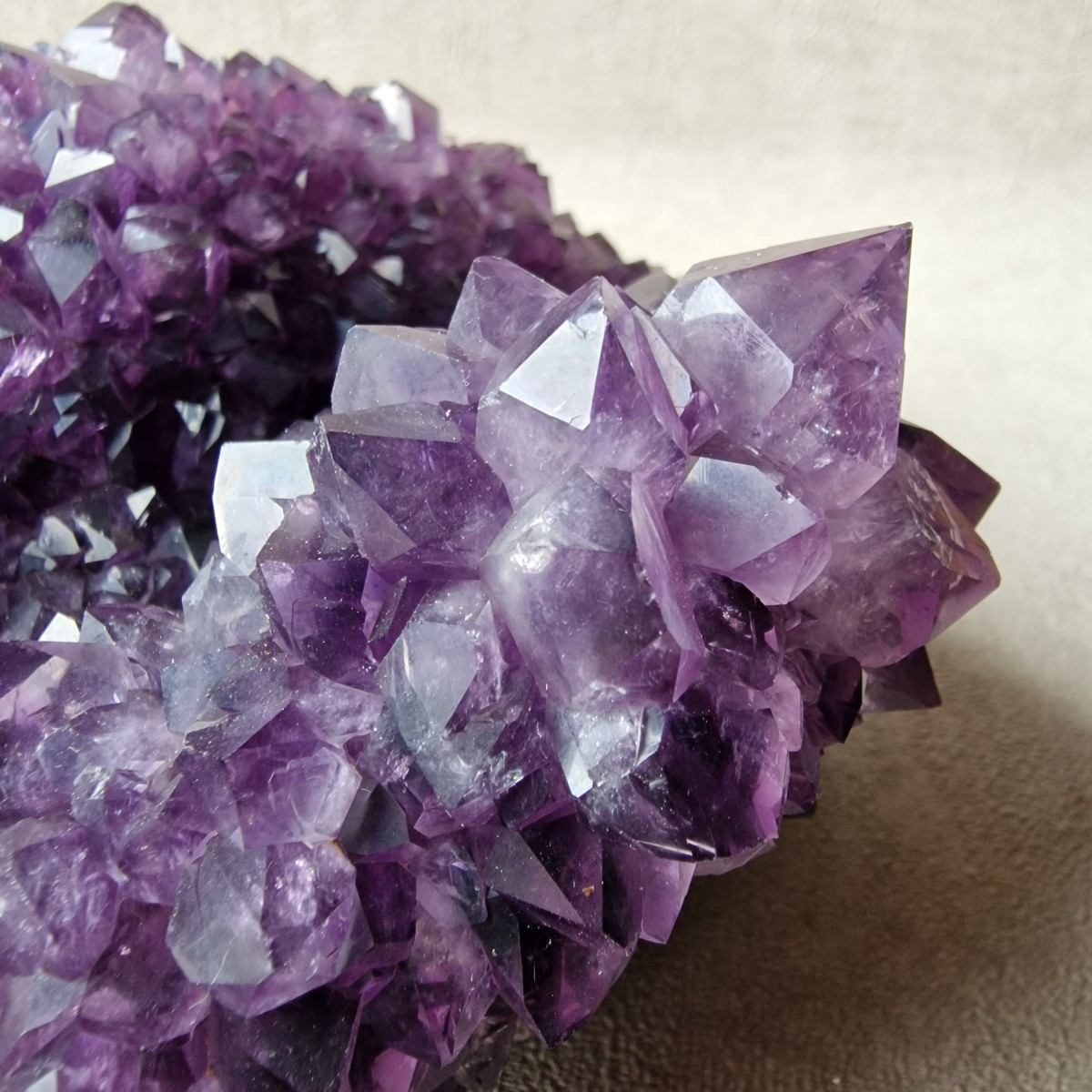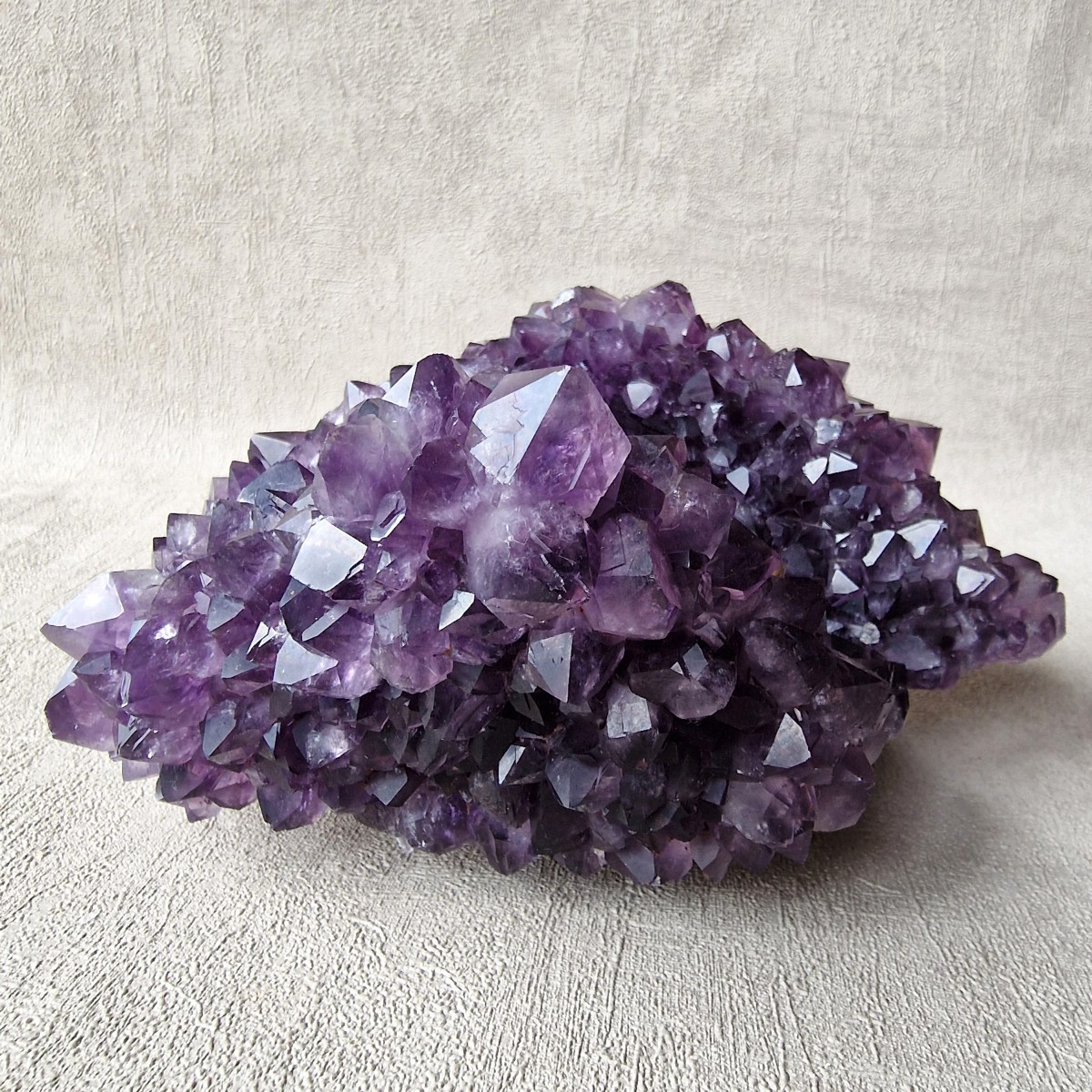 Druse d'améthyste d'Uruguay de couleur intense. Lithothérapie : l'améthyste symbolise la sérénité, la sagesse et la spiritualité.(DR33-4)