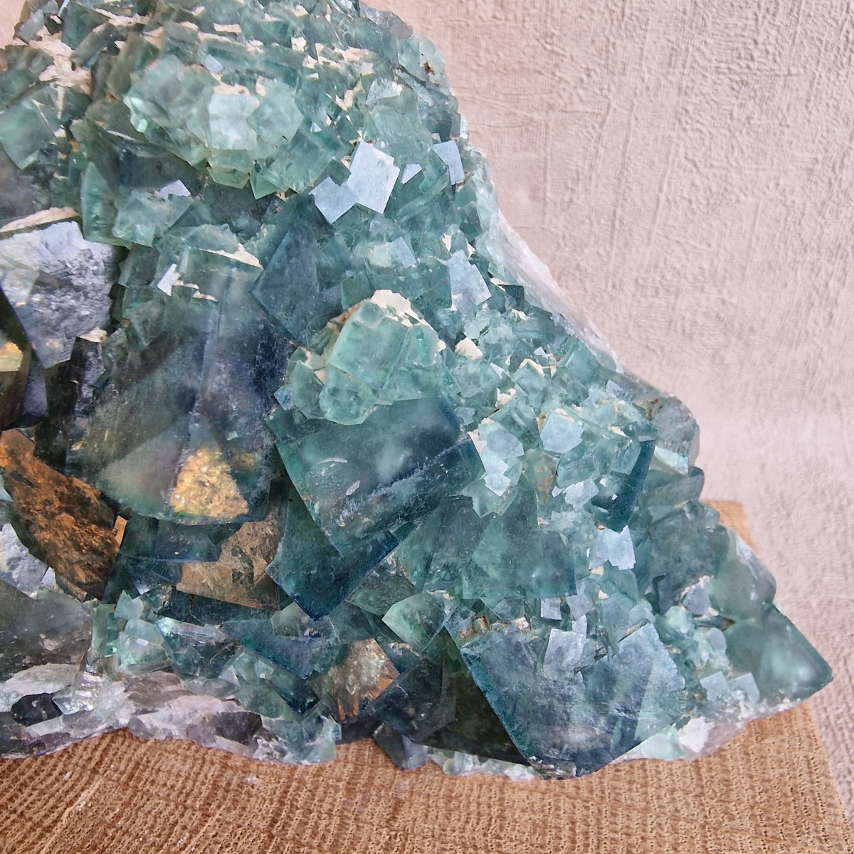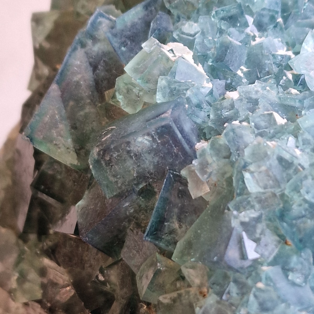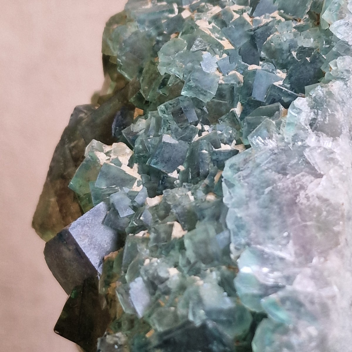 Fluorite verte sur gangue de Mondrosonoro, Ambatofinandranana, Amoroni Mania, Madagascar. Grands cristaux imbriqués jusqu'à 2,4 cm.(BT170-6)