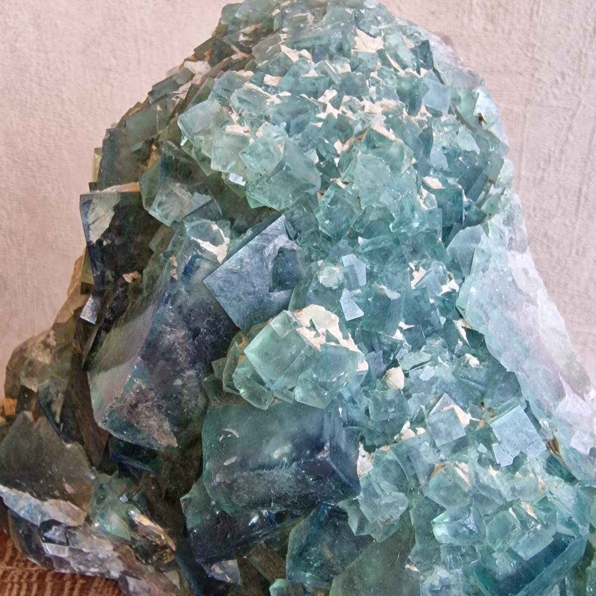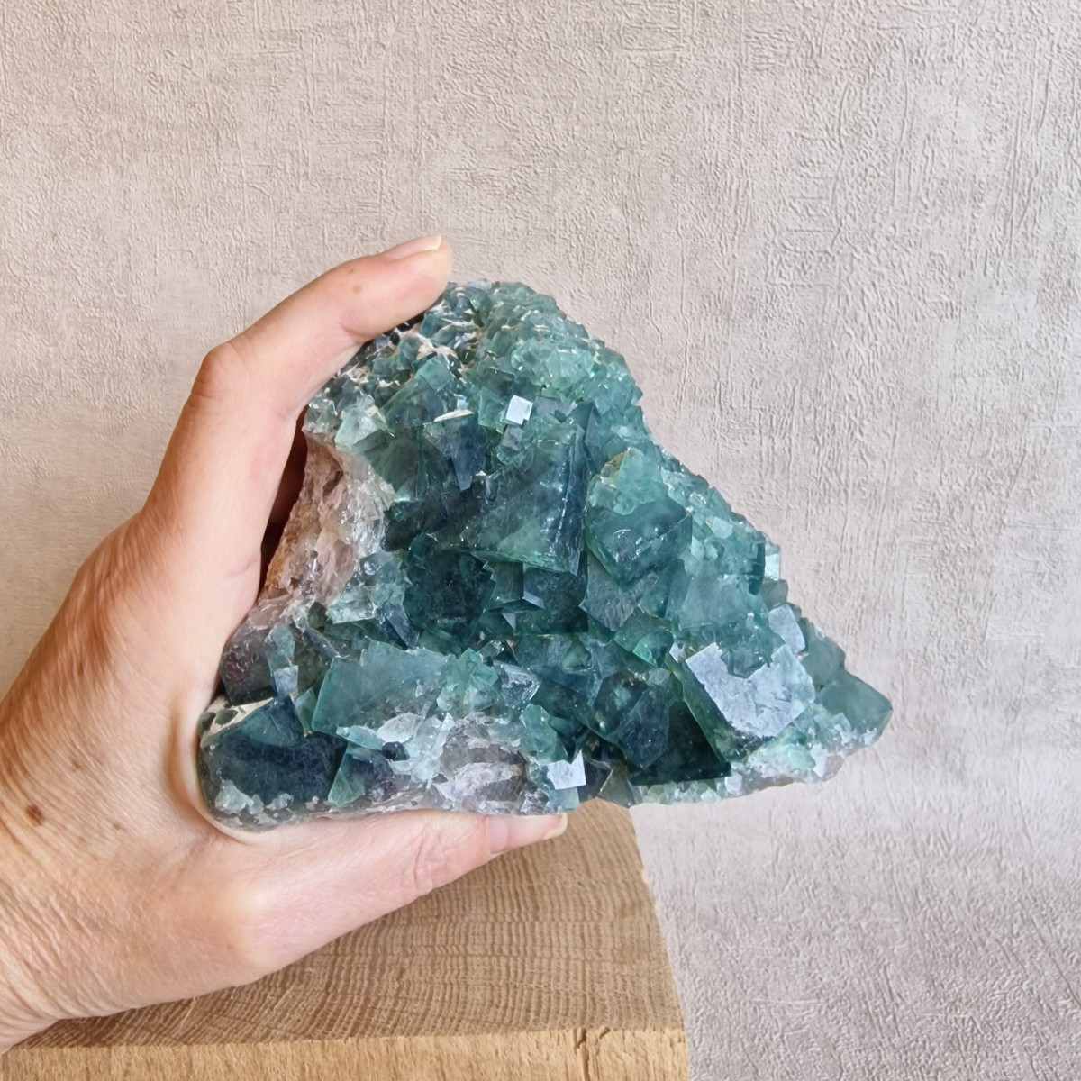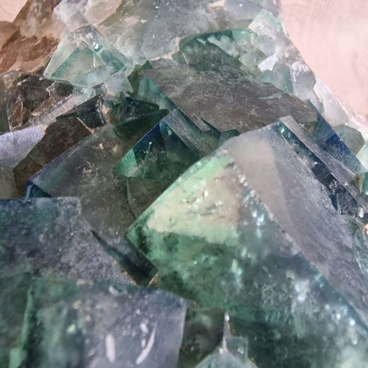 La fluorite de Mandrosonoro - Madagascar présente une belle fluorescence et même un léger dichroïsme bleu au soleil.