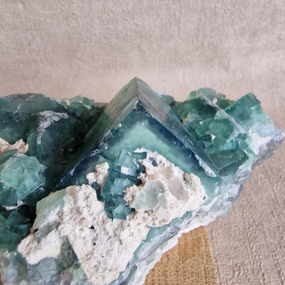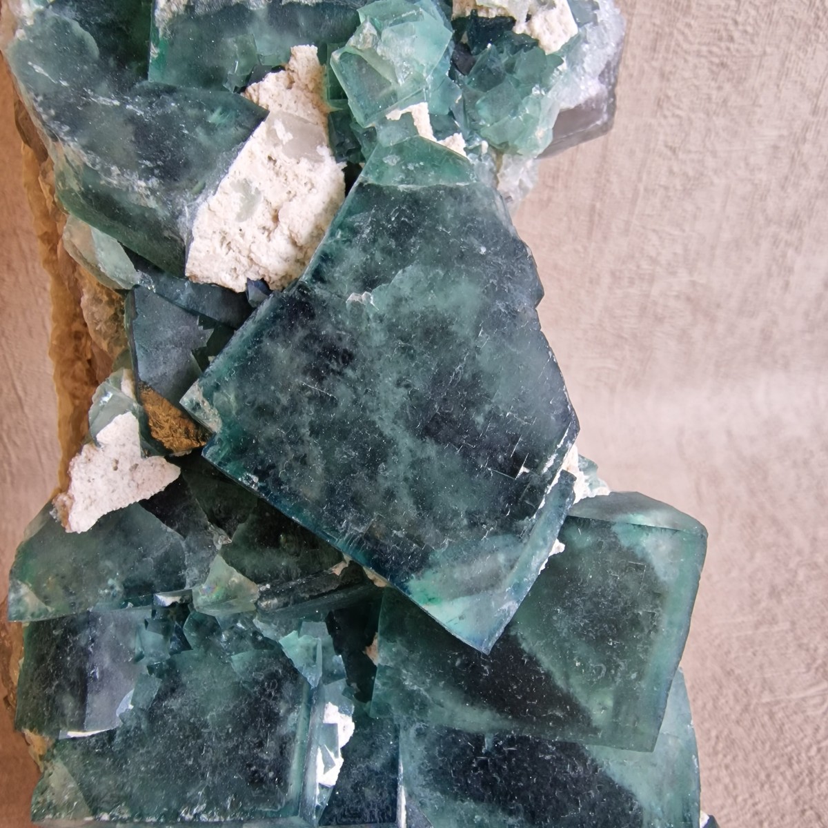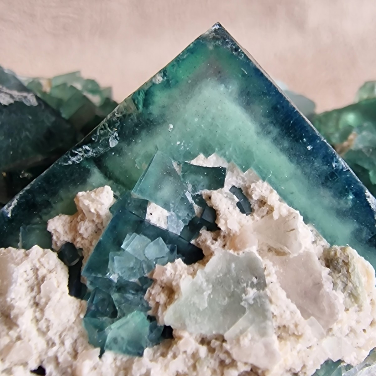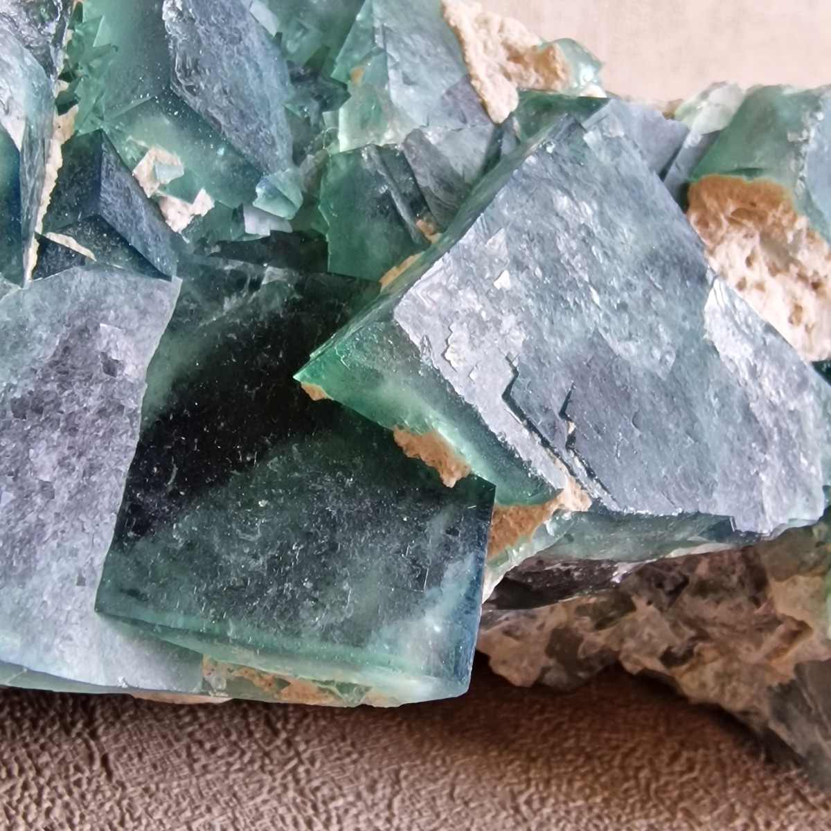 Fluorite verte sur gangue de Mondrosonoro, Ambatofinandranana, Amoroni Mania, Madagascar. Grands cristaux imbriqués jusqu'à 3,2 cm.(BT170-7)