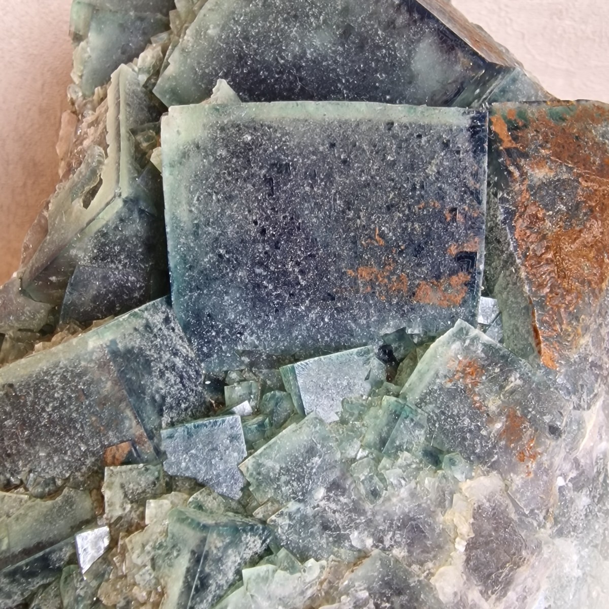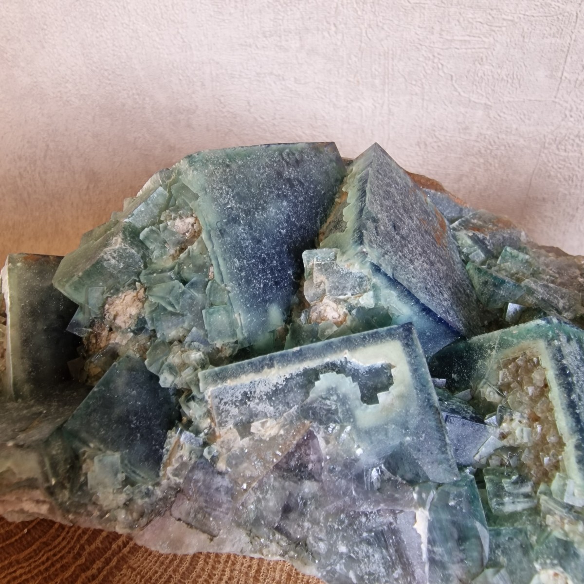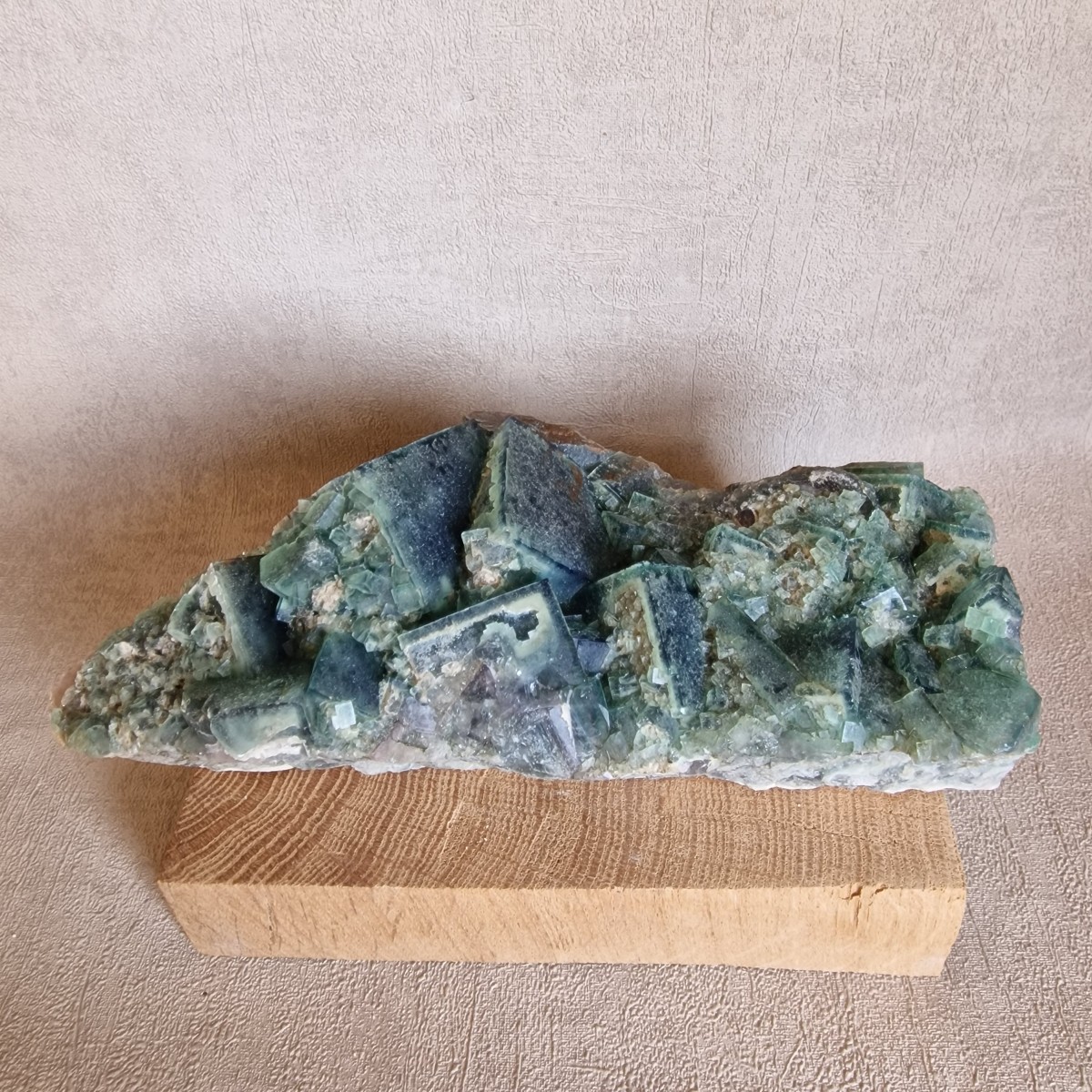 Fluorite verte sur gangue de Mondrosonoro, Ambatofinandranana, Amoroni Mania, Madagascar. Grands cristaux imbriqués jusqu'à 3,6 cm.(BT170-8)