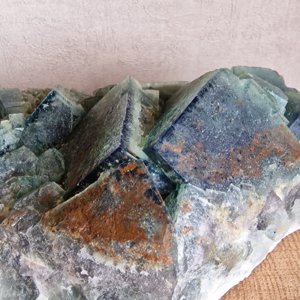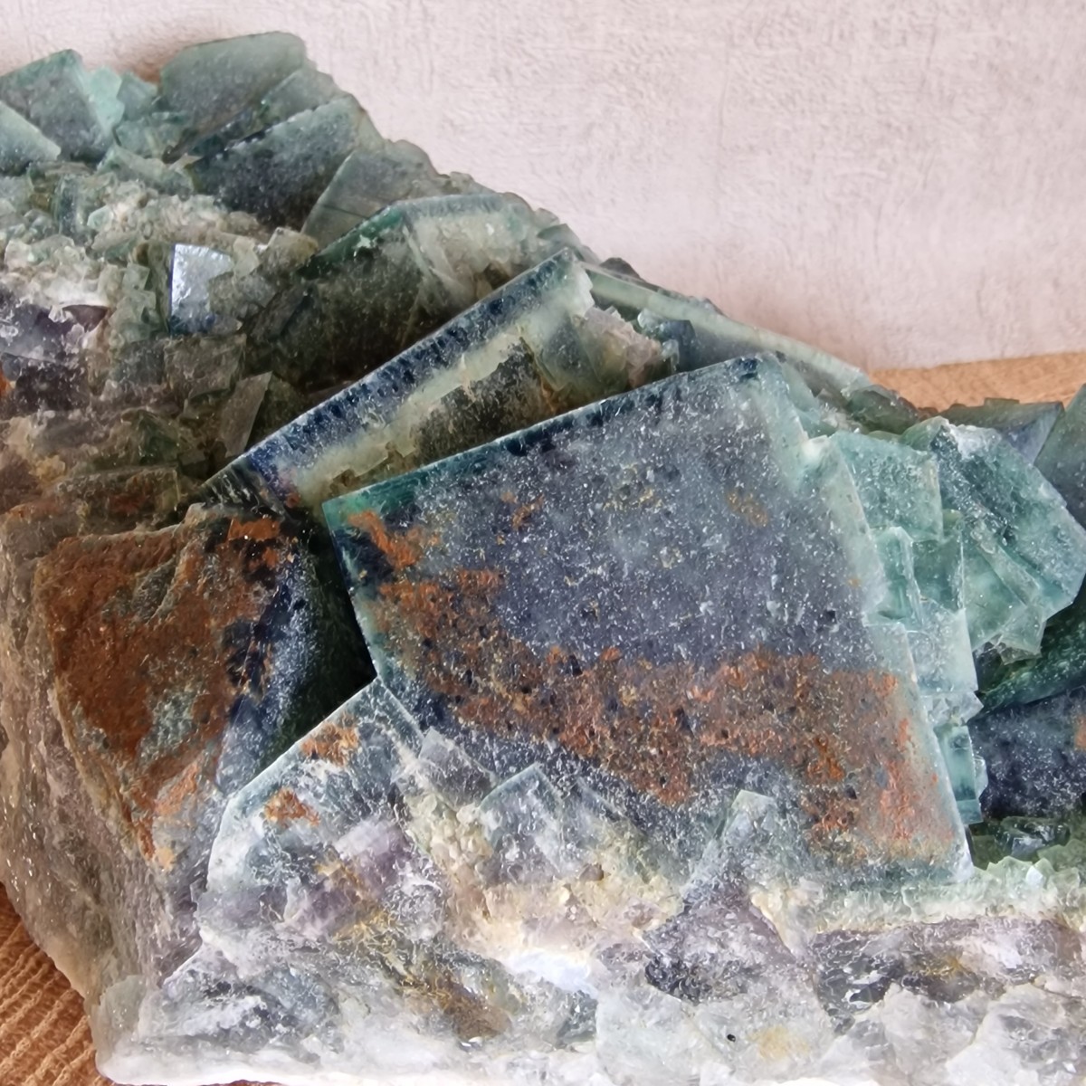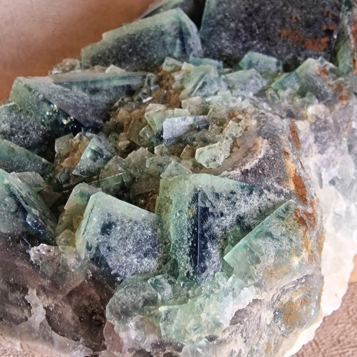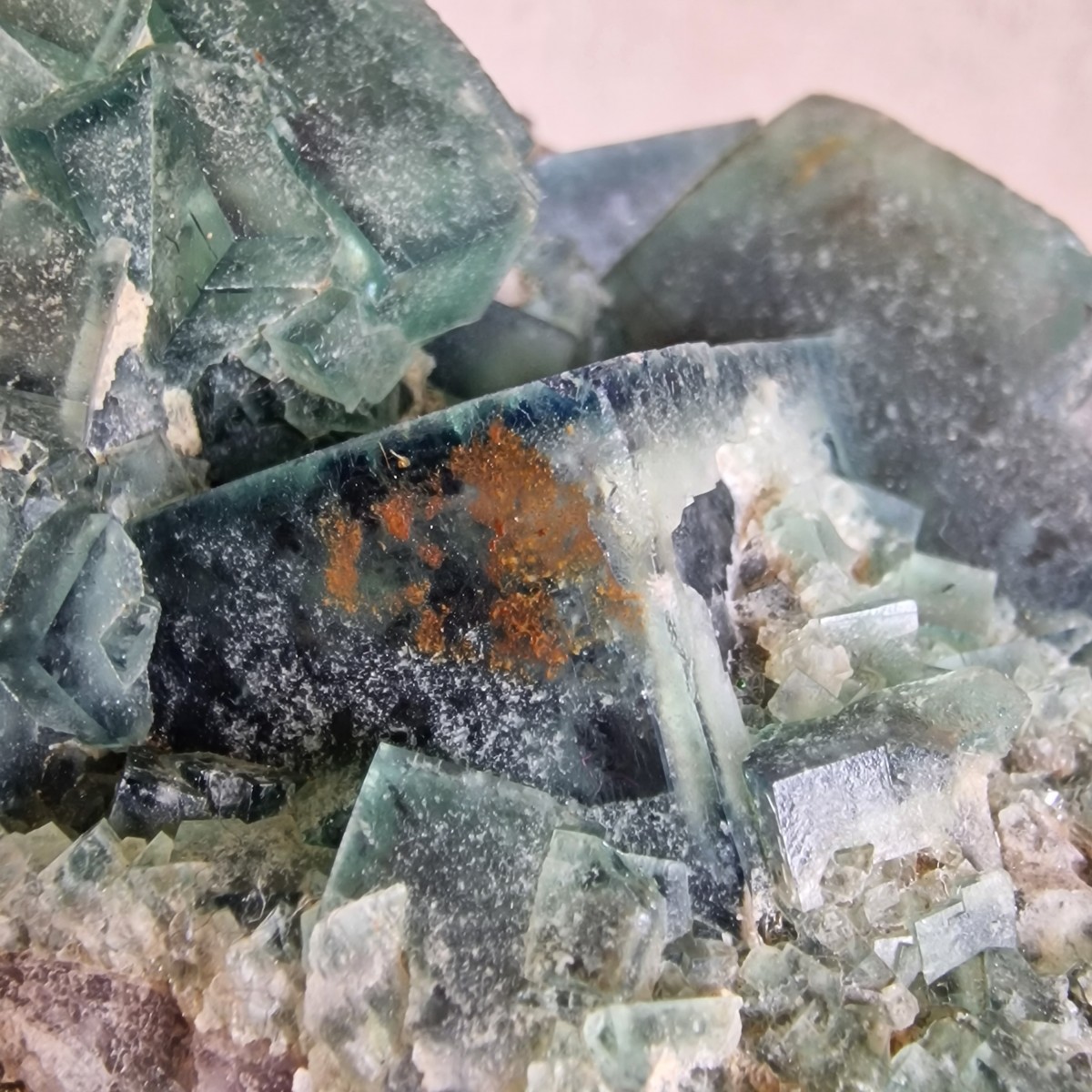 La fluorite de Mandrosonoro - Madagascar présente une belle fluorescence et même un léger dichroïsme bleu au soleil.
