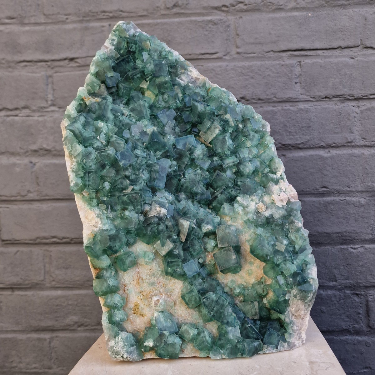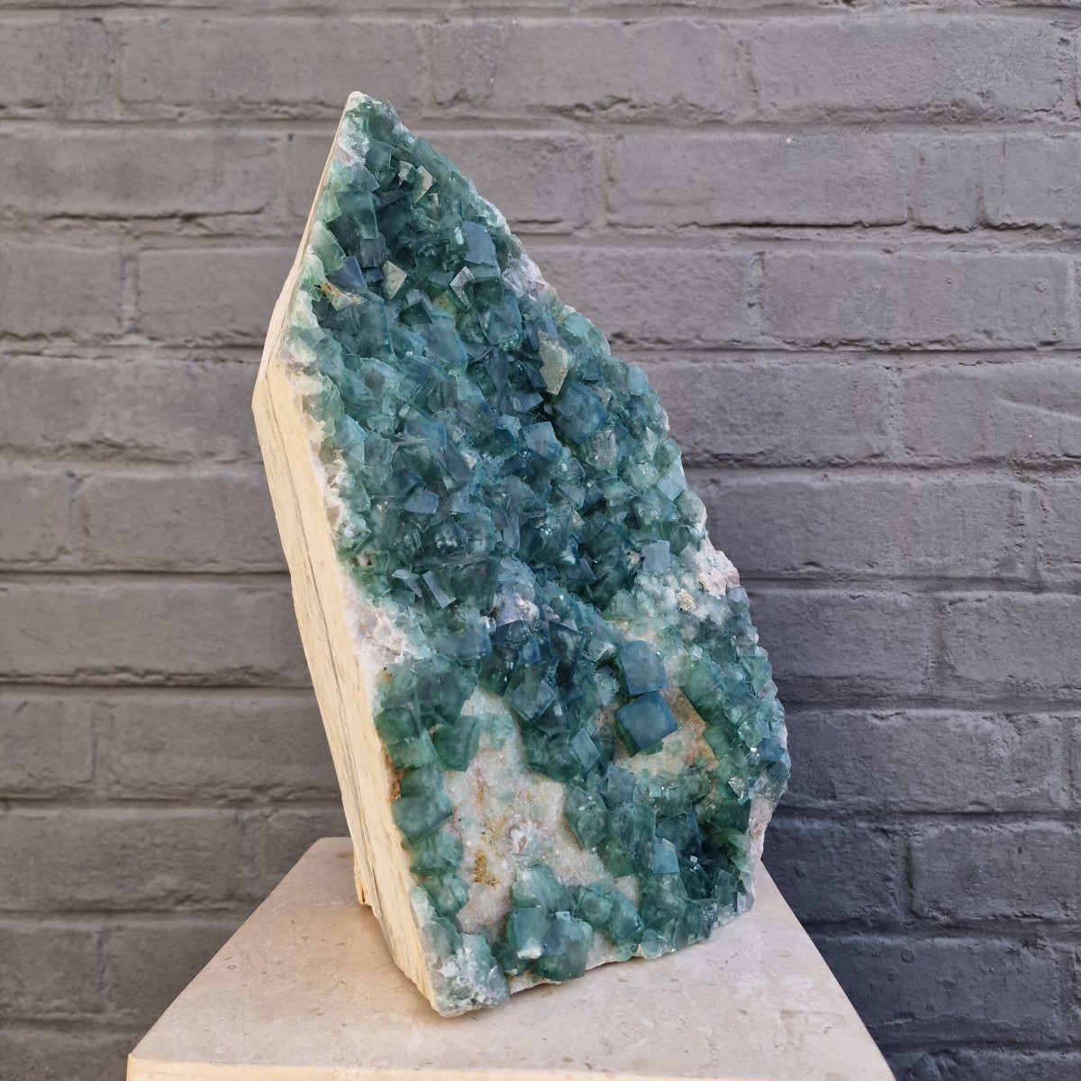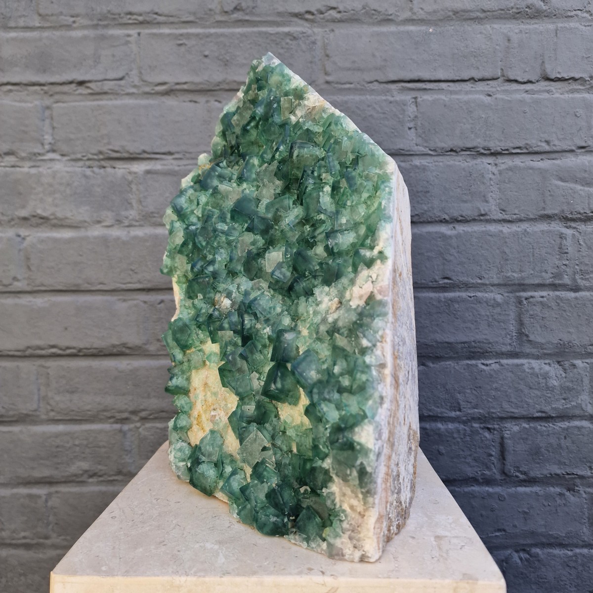 Fluorite verte sur gangue de 9,582 kg. Origine : Mondrosonoro, Ambatofinandranana, Amoroni Mania, Madagascar. (BT169-2)