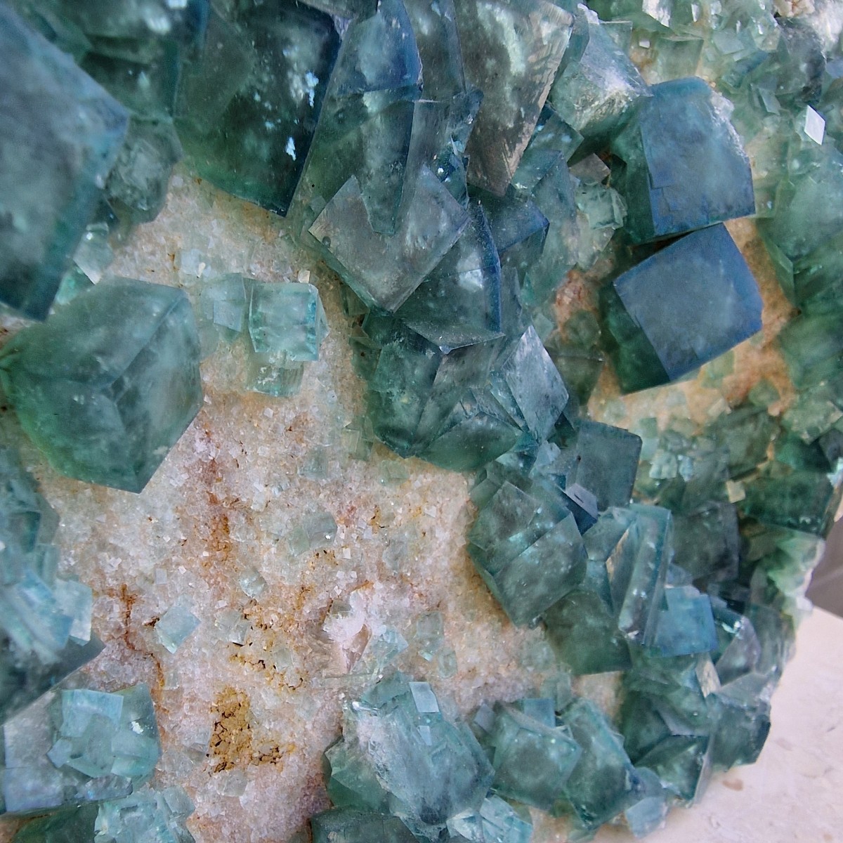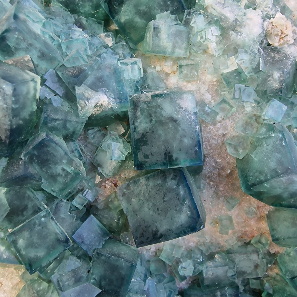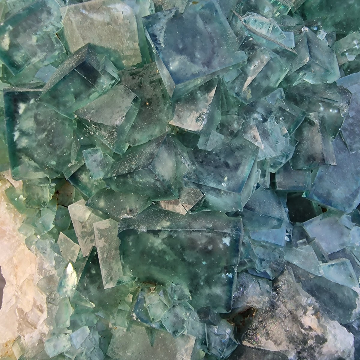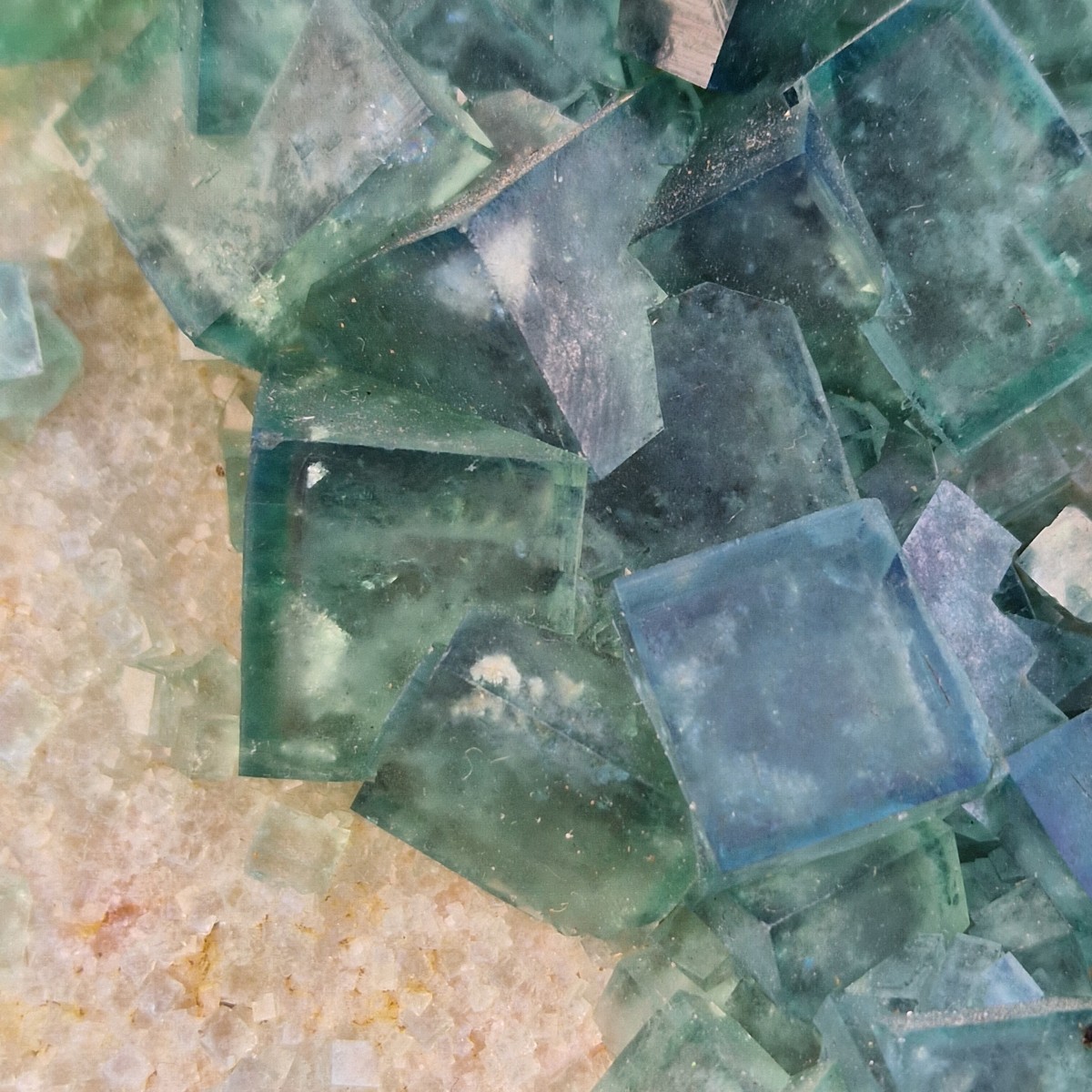 La fluorite de Mandrosonoro - Madagascar présente une belle fluorescence et même un léger dichroïsme bleu au soleil.