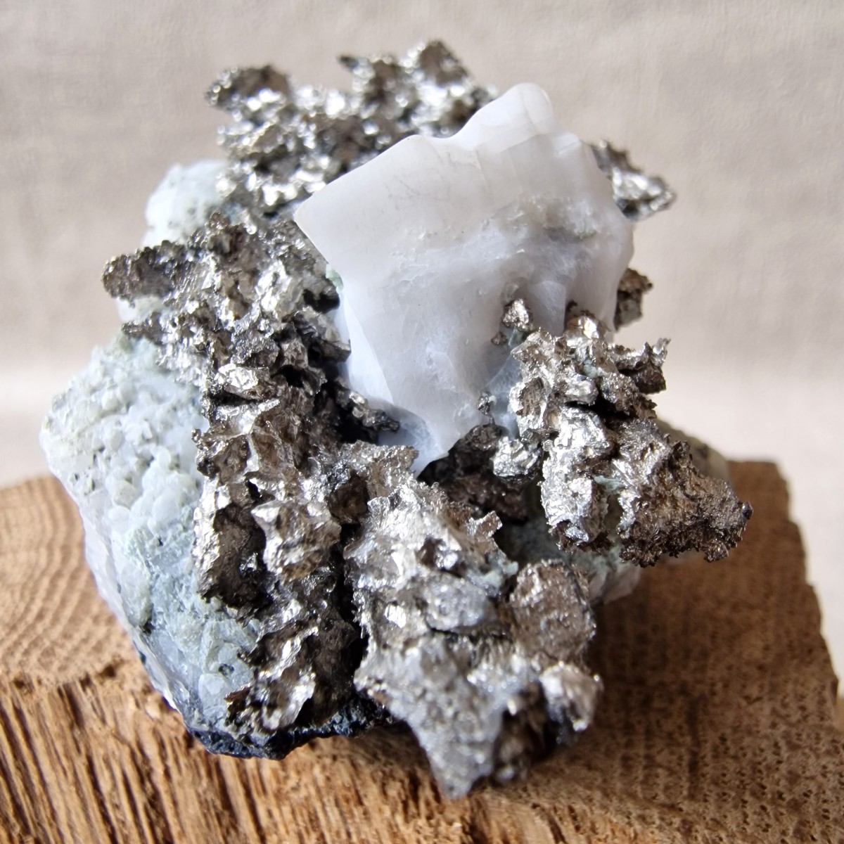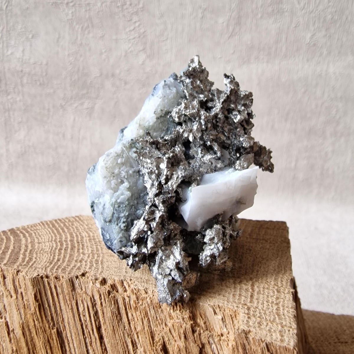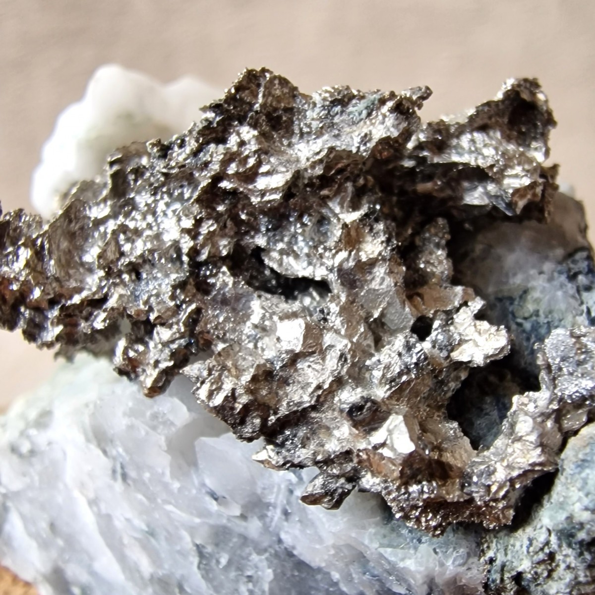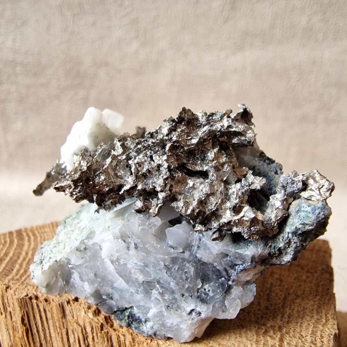 Argent Natif Cristallisé de Bou Azzer (Sud Maroc) : Spécimen de Collection présentant de nombreux cristaux d'argent sur calcite et quartz. Non soclé.(MN03-5)