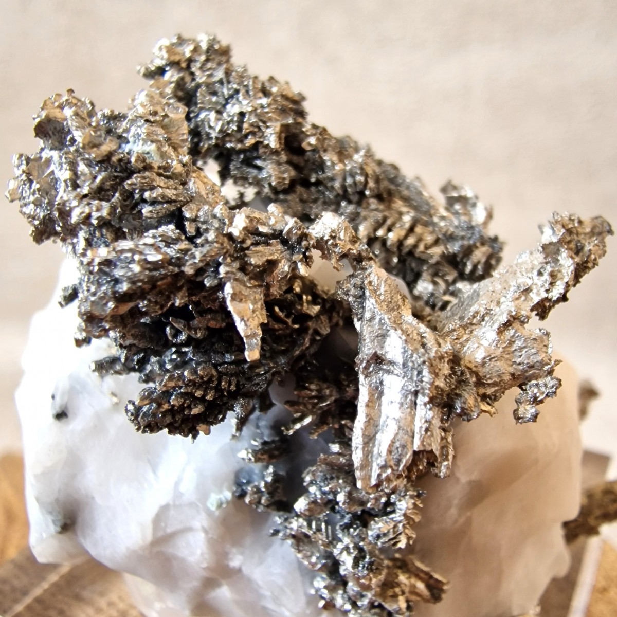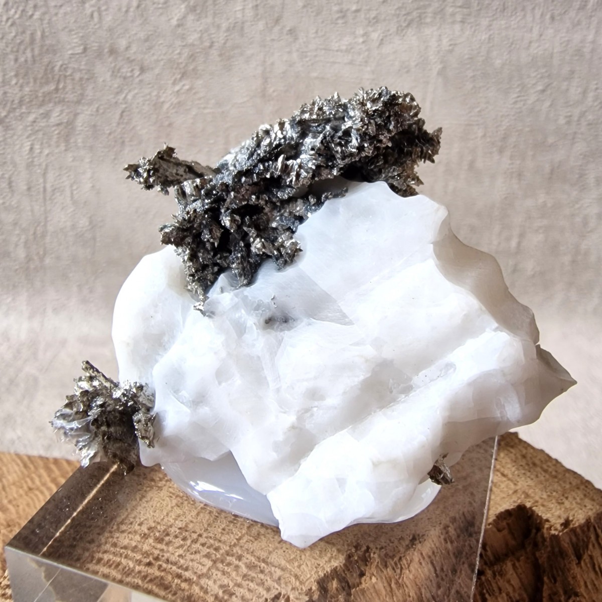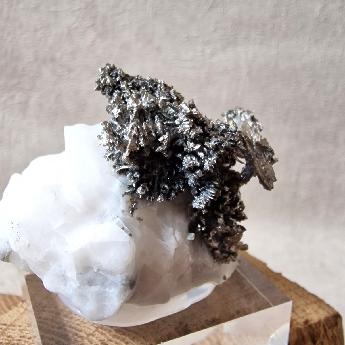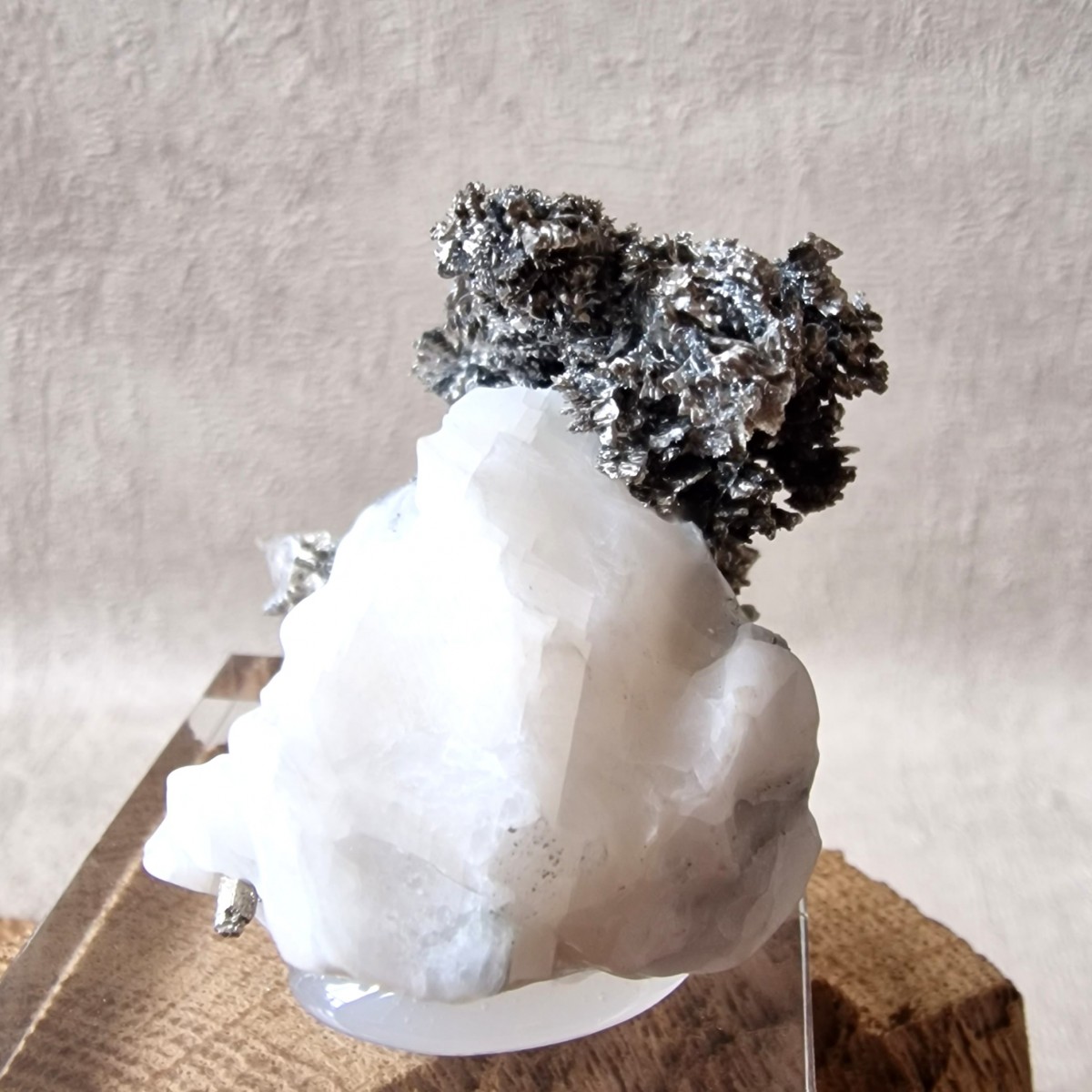 Argent Natif Cristallisé de Bou Azzer (Sud Maroc) : Spécimen de Collection présentant de nombreux cristaux d'argent sur calcite. Soclé.(MN03-3)