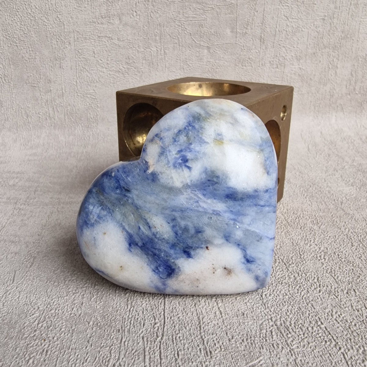 Coeur en Afghanite. Lithothérapie : l'Afghanite apporte clarté mentale, elle nous aide à porter un regard neuf sur notre ressenti et notre relation avec les autres. (25485-7)