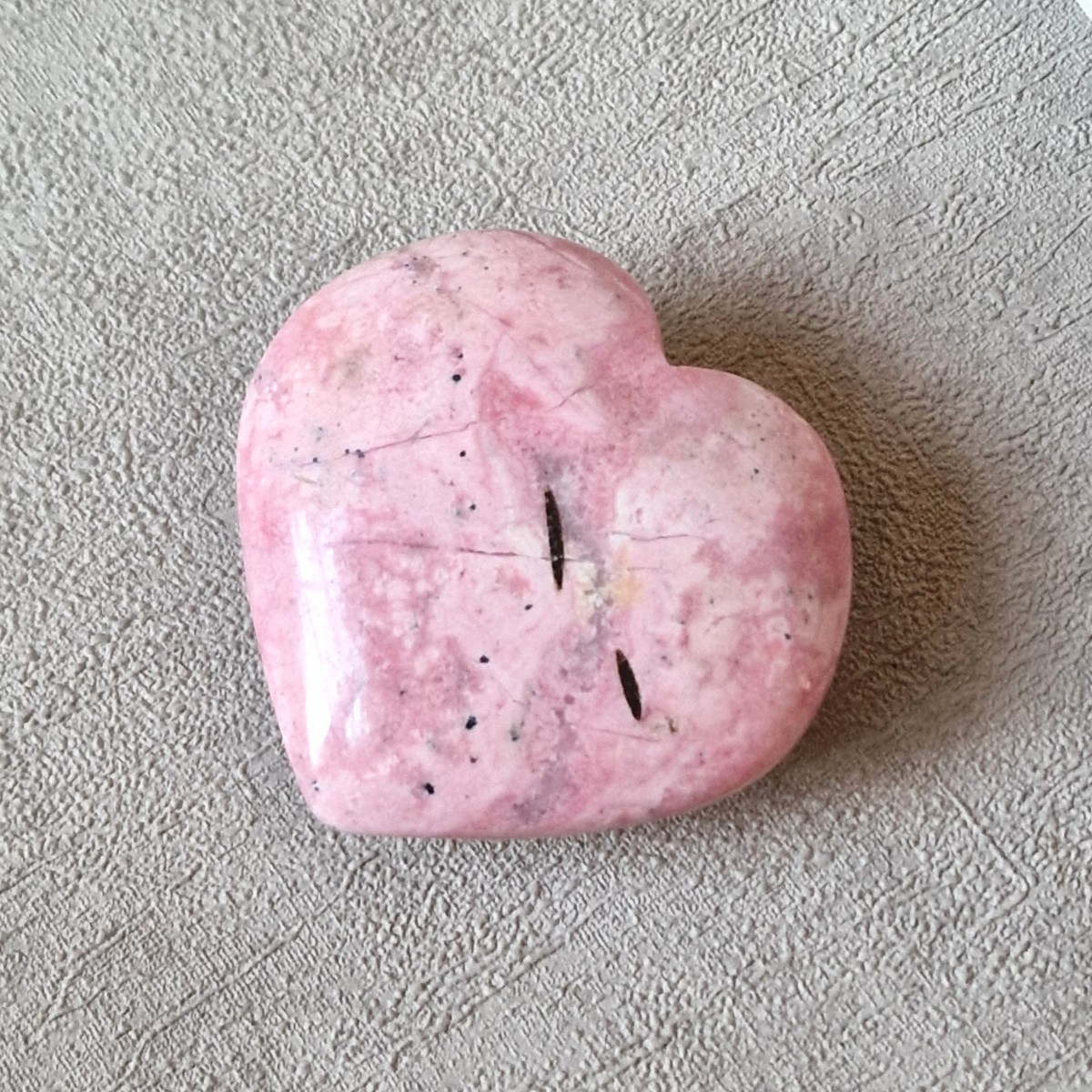 Coeur en rhodonite, originaire du Pérou. Lithothérapie : apaisante, la rhodonite aide à surmonter les épreuves douloureuses.(CR114-2)