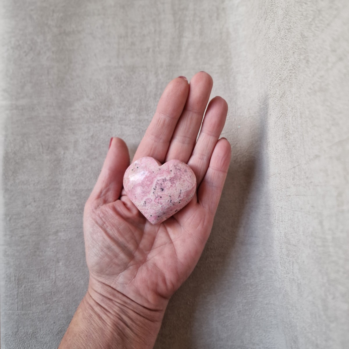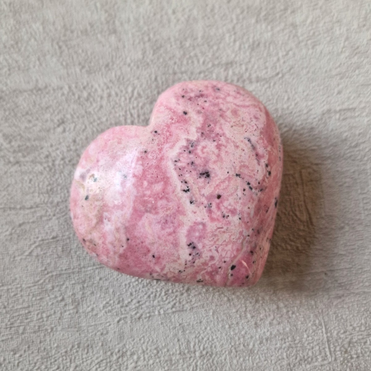 Coeur en rhodonite, originaire du Pérou. Lithothérapie : apaisante, la rhodonite aide à surmonter les épreuves douloureuses.(CR114-5)