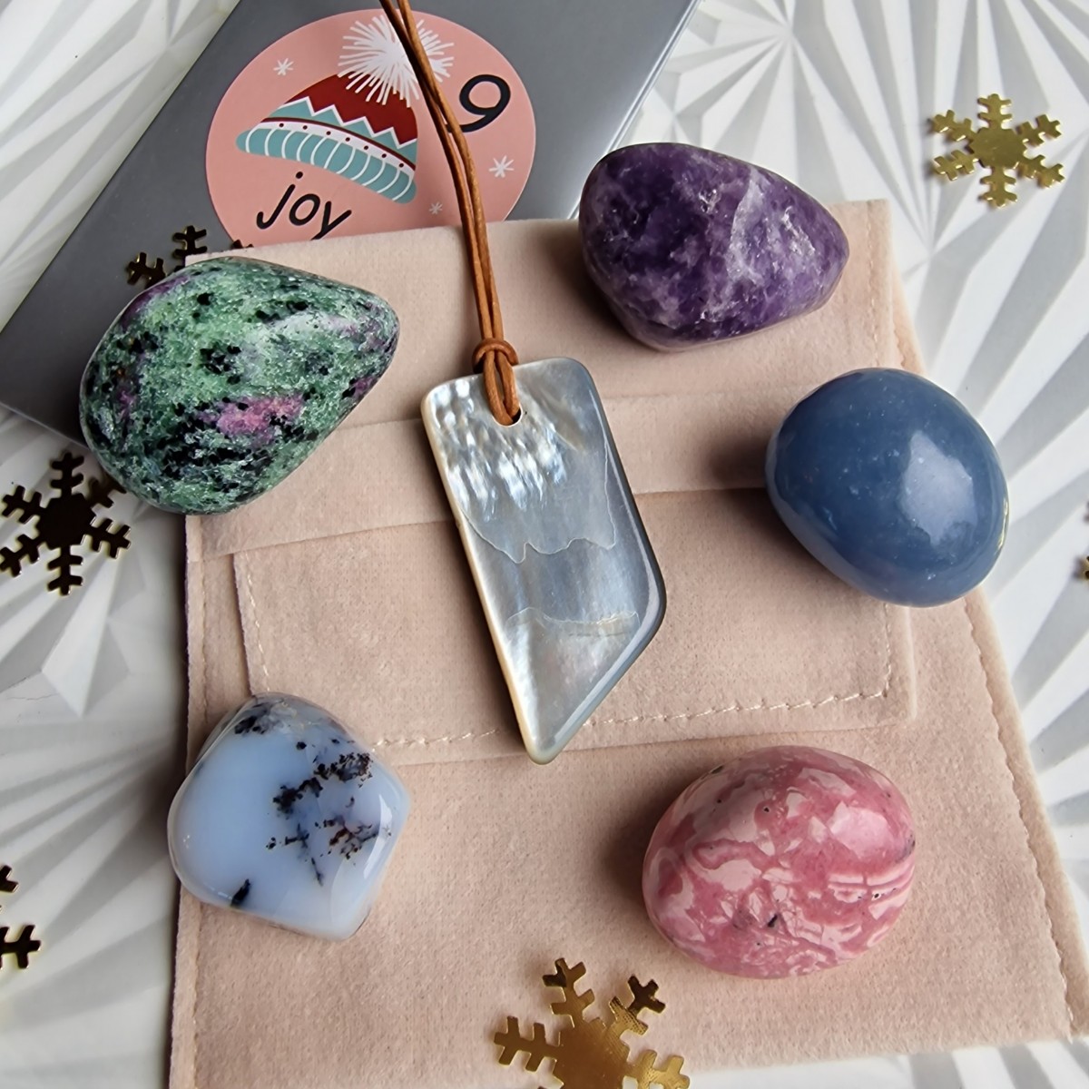 Chaque ensemble contient 6 pierres soigneusement choisies : vous y trouverez des pierres polies, des pierres brutes, mais aussi un pendentif élégant, un bracelet, un petit cœur et des pointes en pierres naturelles. Une belle diversité pour varier les plaisirs.