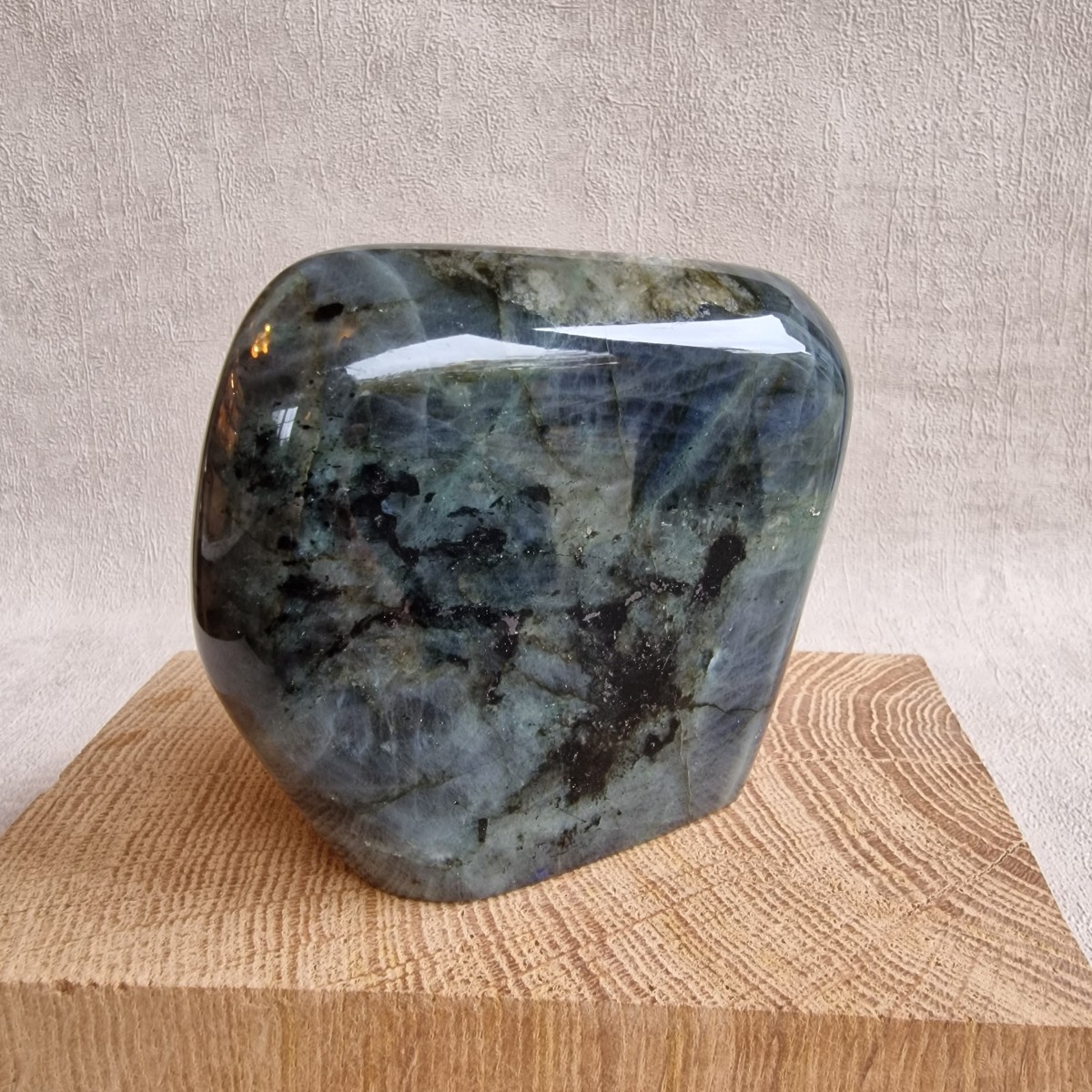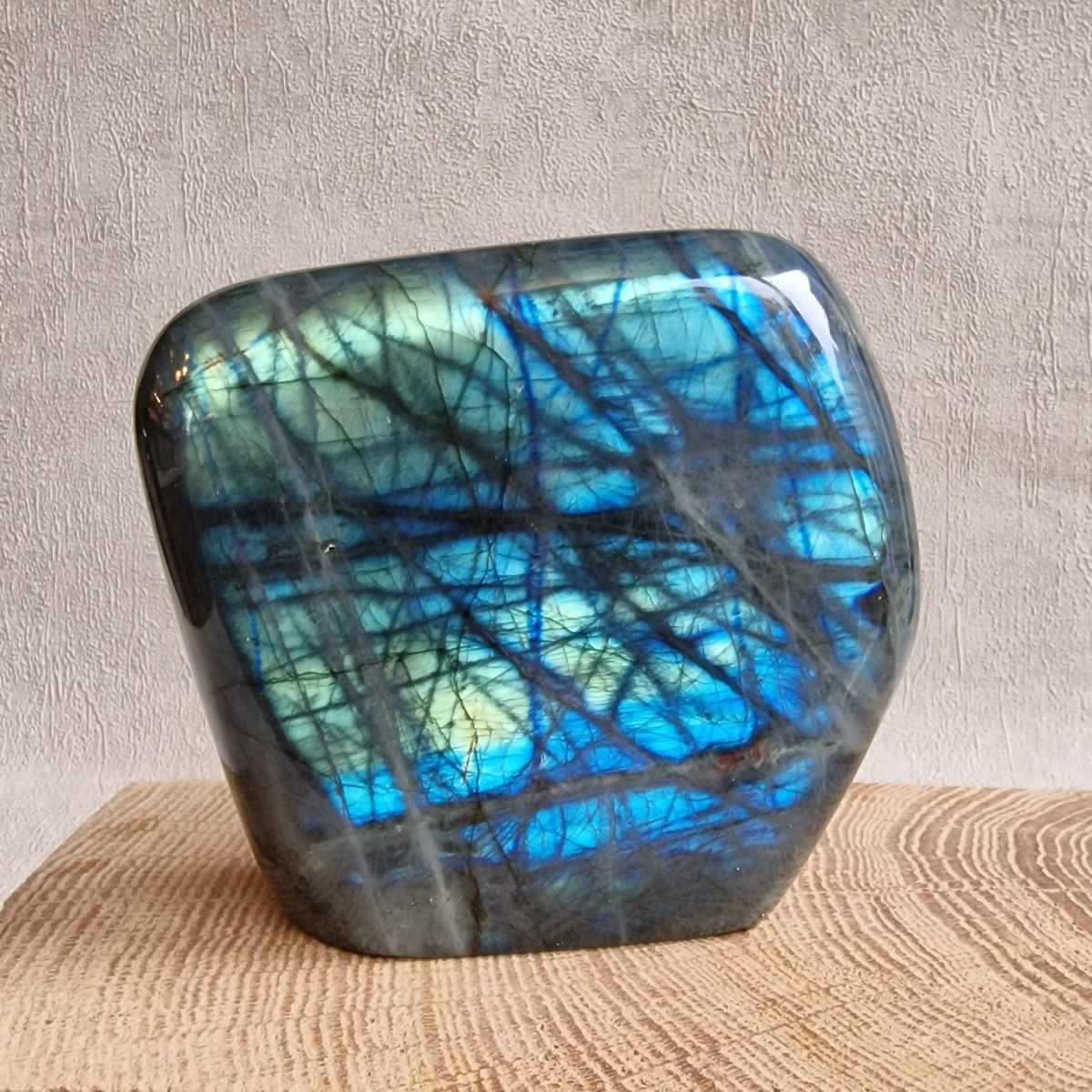 Bloc à poser de labradorite +/- 8,8 cm de haut. Lithothérapie : pierre de protection, de confiance en soi, d'introspection et de divination.(FL109-7)