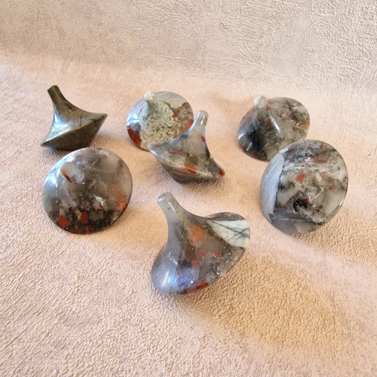 Toupie en jaspe héliotrope (jaspe sanguin), un petit présent qui plaira certainement aux enfants qui aiment les pierres!(DI09)