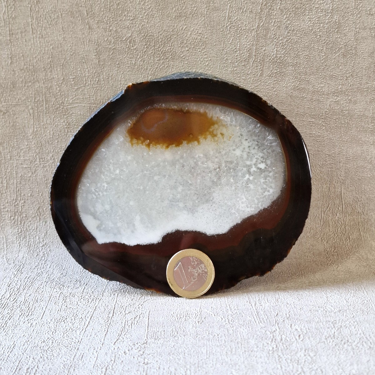Nodule d'agate de +/- 12,5 cm X 10,5 cm. Lithothérapie : l'agate apporte stabilité et apaise le coeur et l'esprit.(BT164-2)