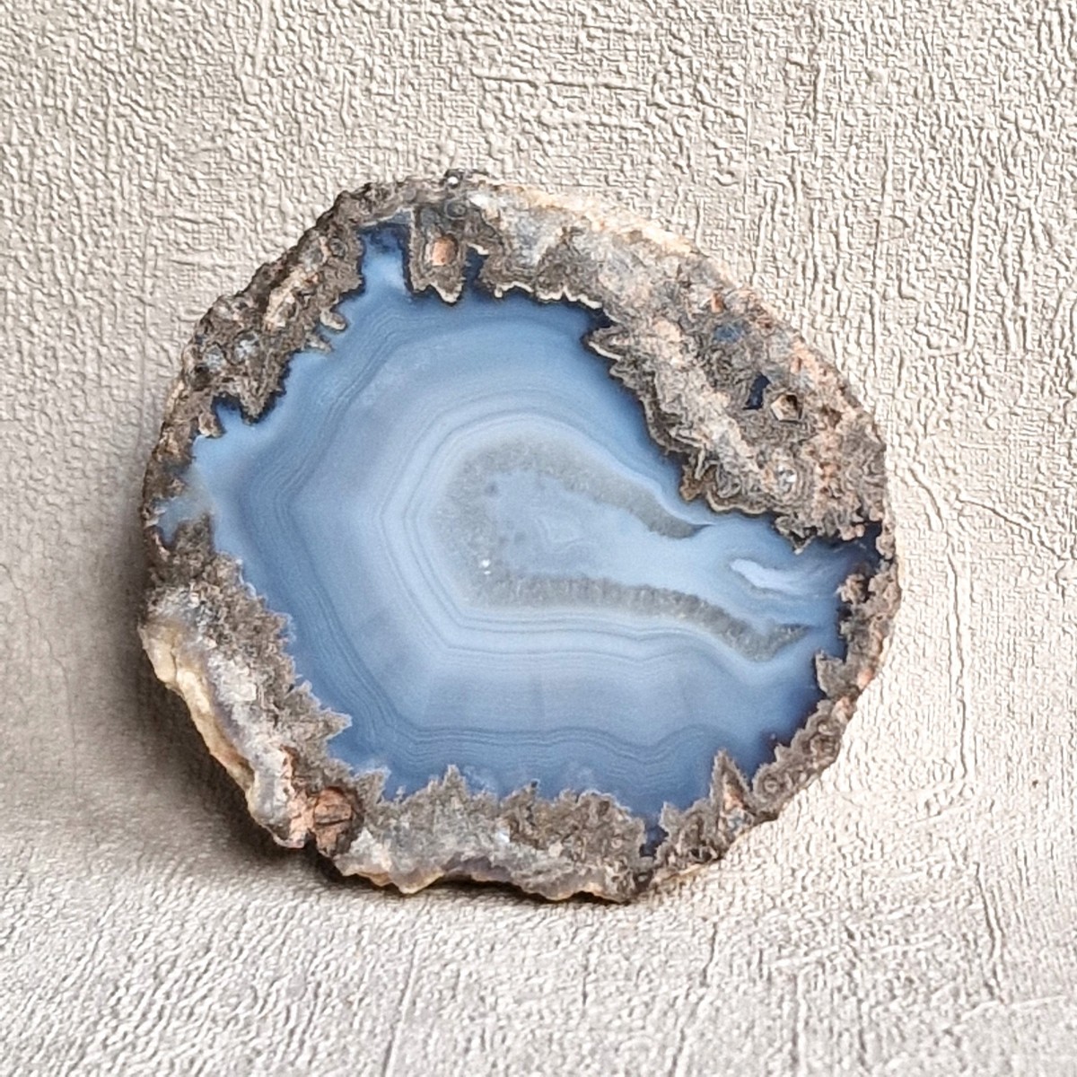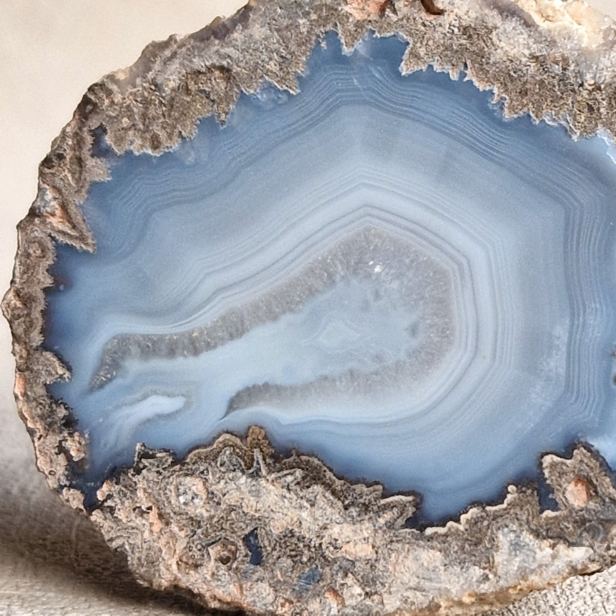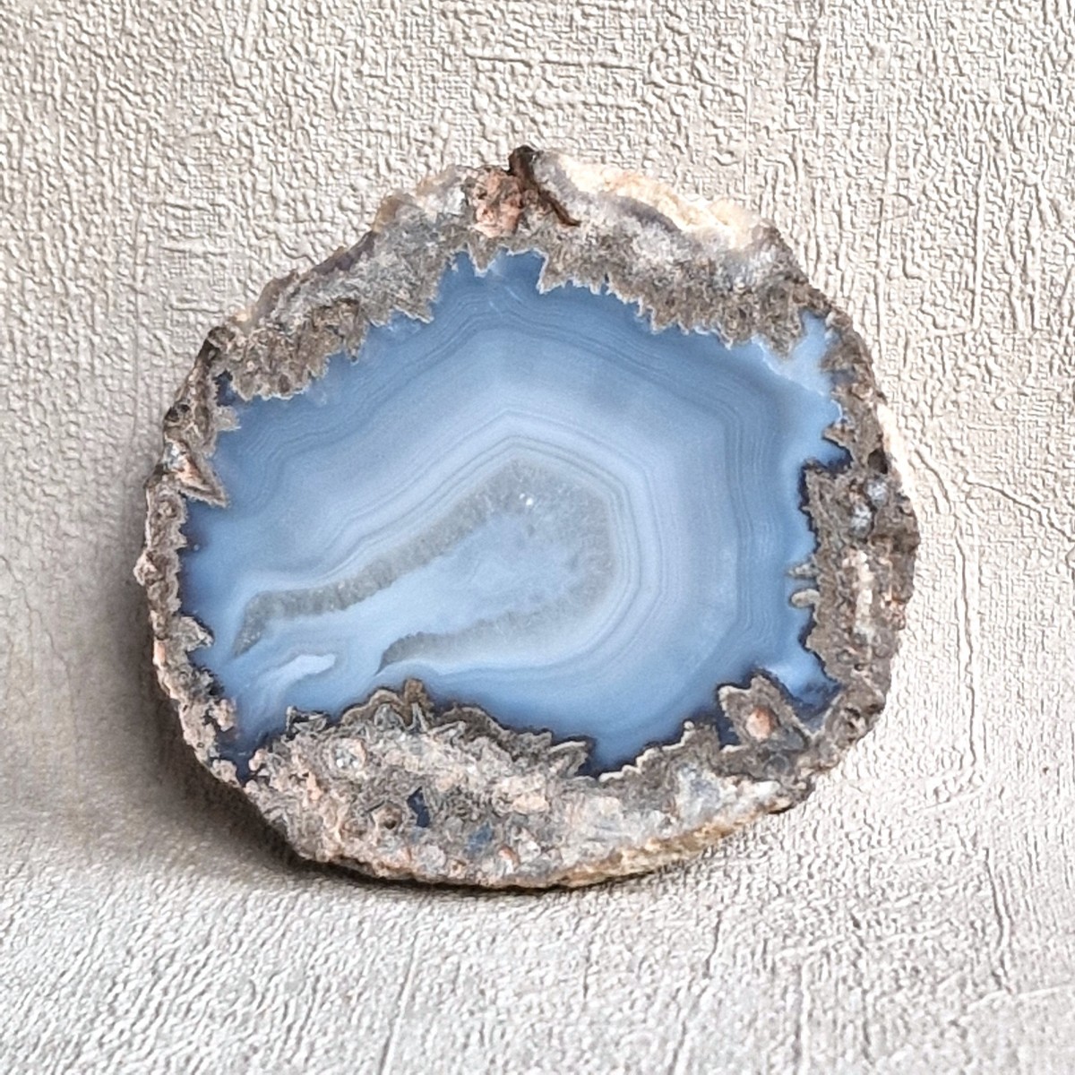 Lithophyse remplie de calcédoine bleue, de la collection Alain Blairon, provenance non renseignée, +/- 6,5 cm X 6 cm.(B-27-32)
