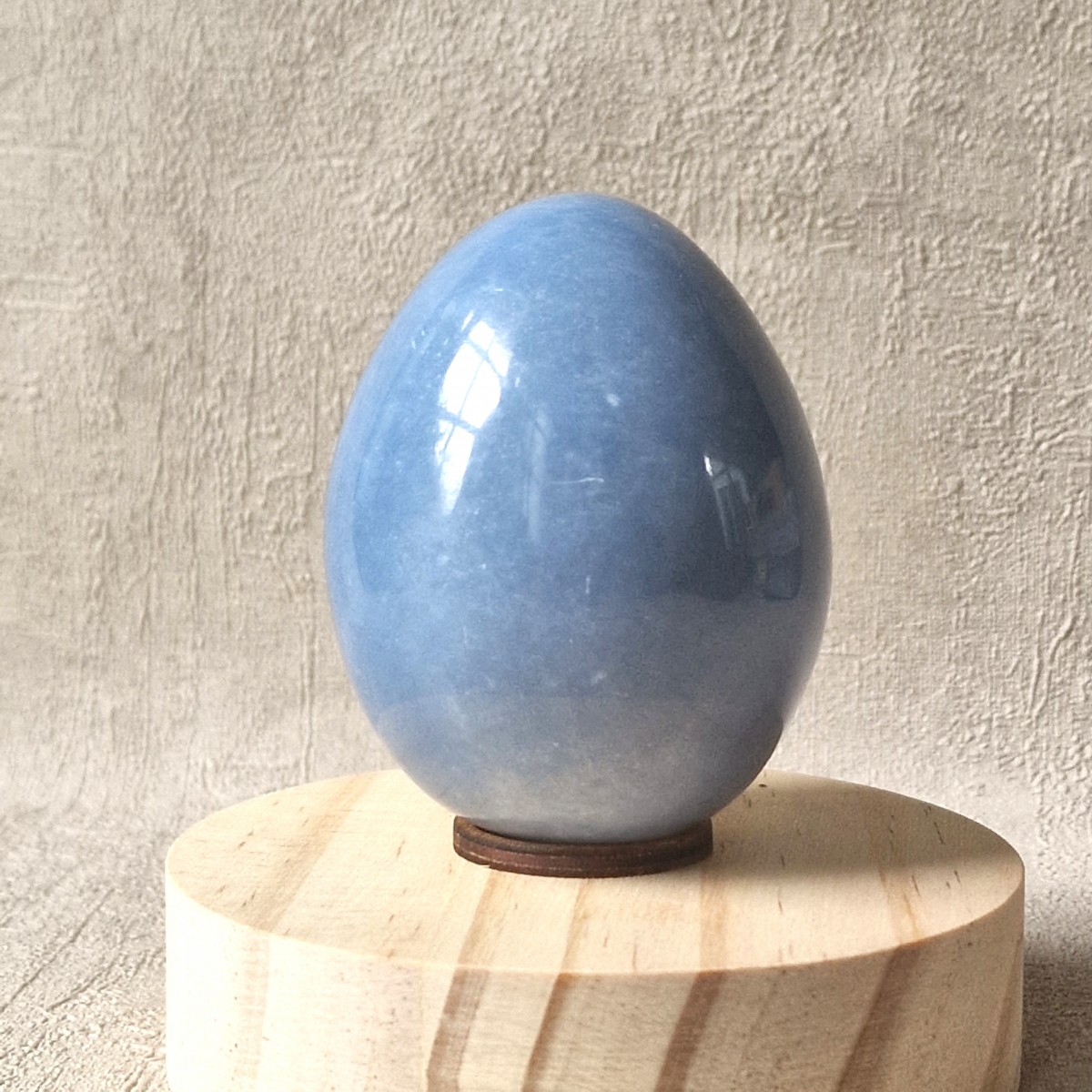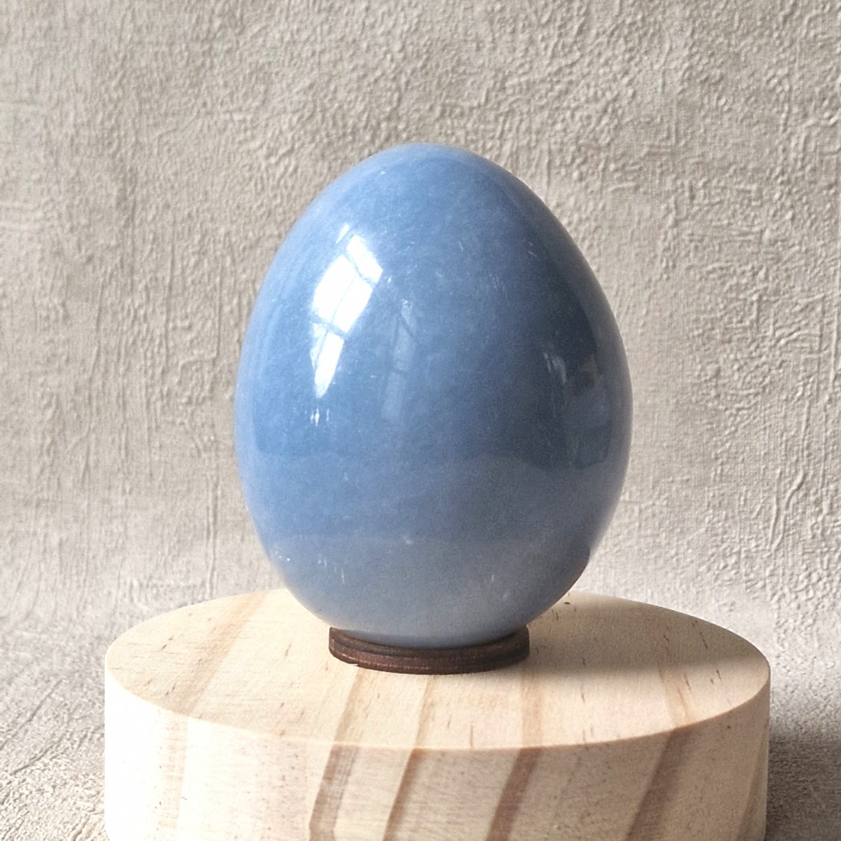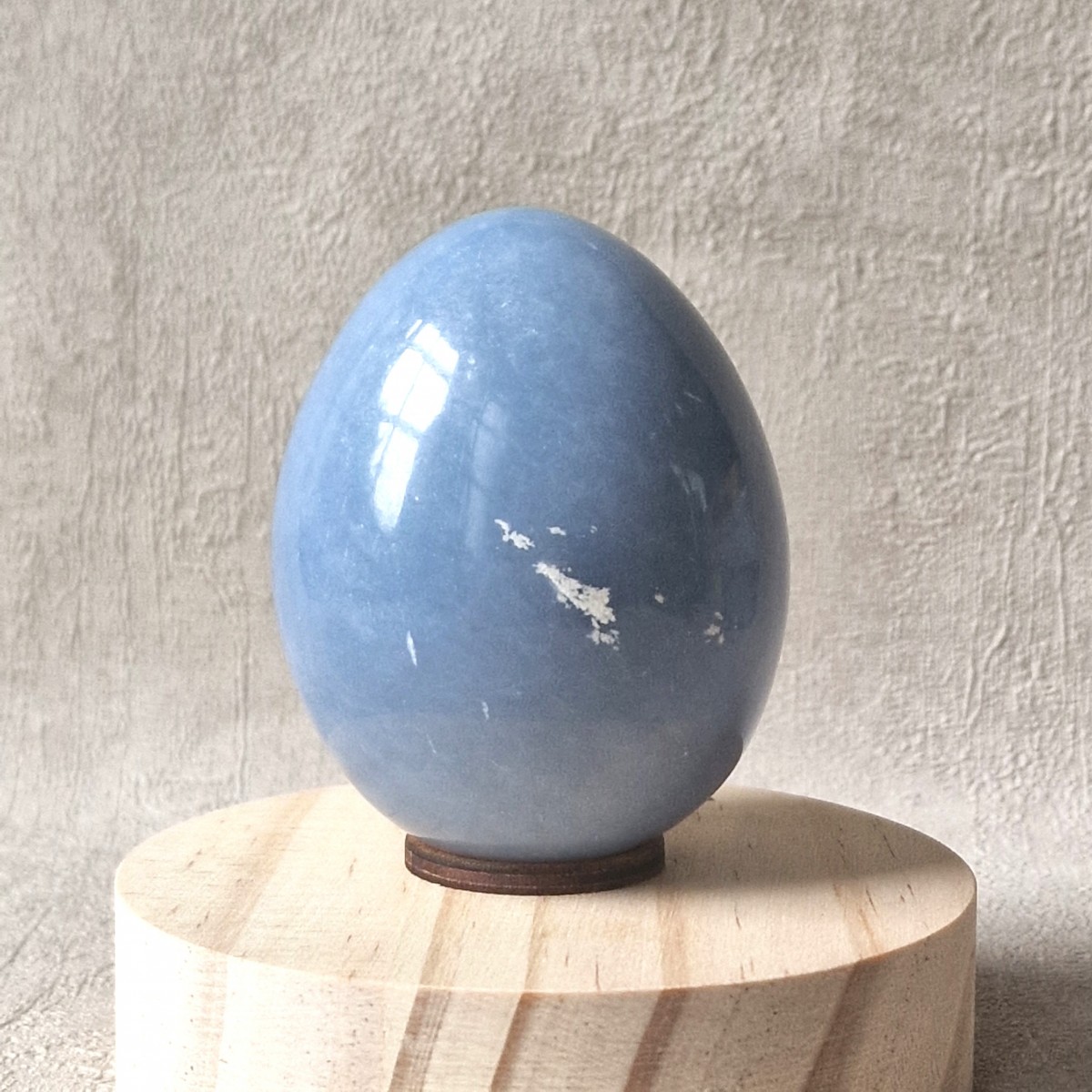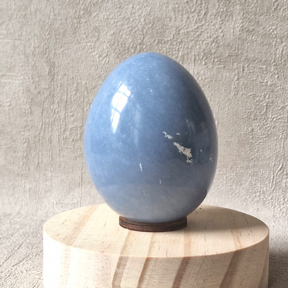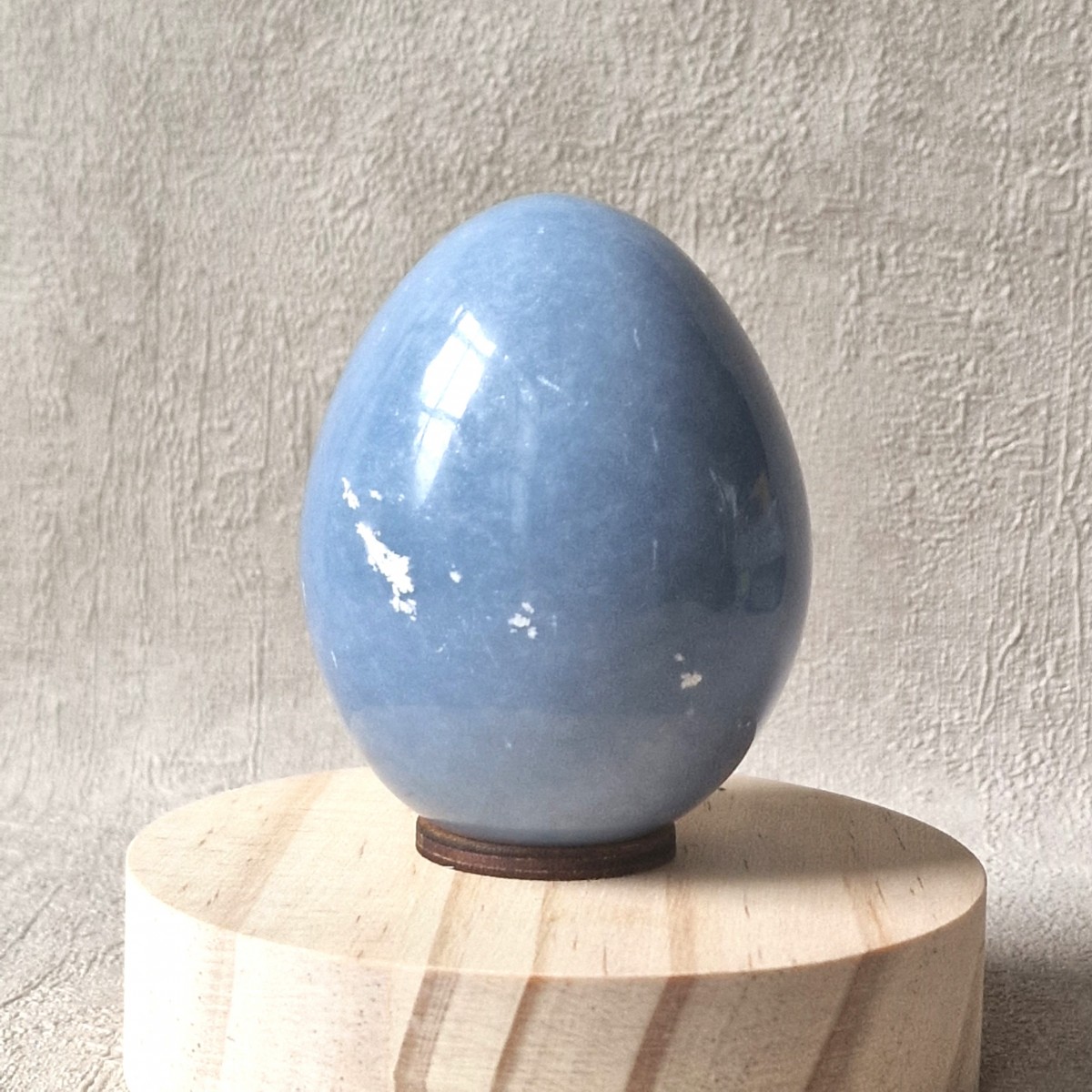 Oeuf en angélite. Lithothérapie : pierre de communication avec nos Guides, l'angélite aide à percevoir et décoder les signes.(OF31-2)