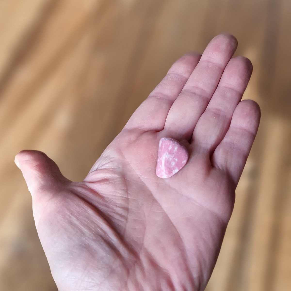 Pierre roulée de thulite de +/- 1,5 cm. Lithothérapie : cicatrisation des plaies, sagesse du coeur et équilibre des relations.(PP38)