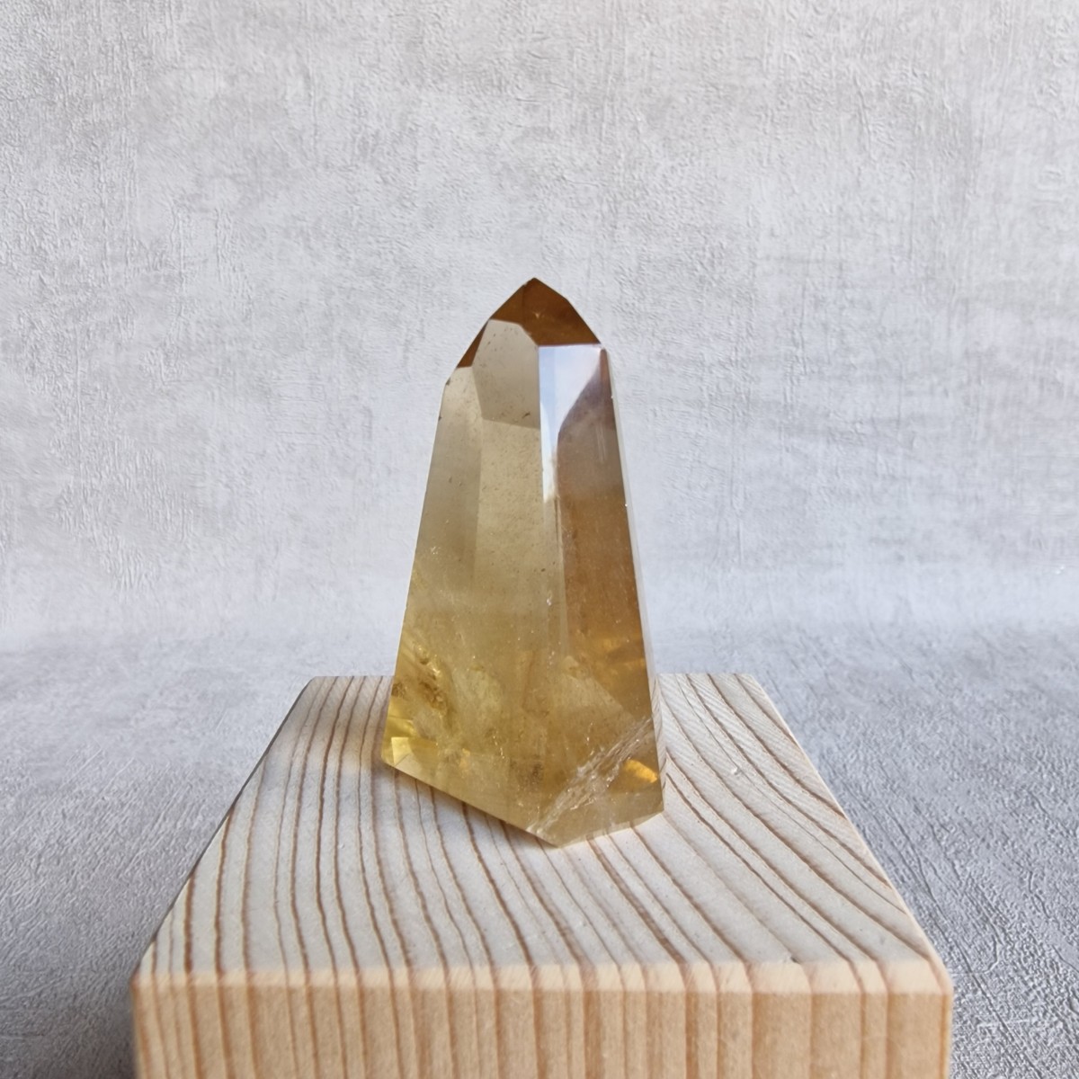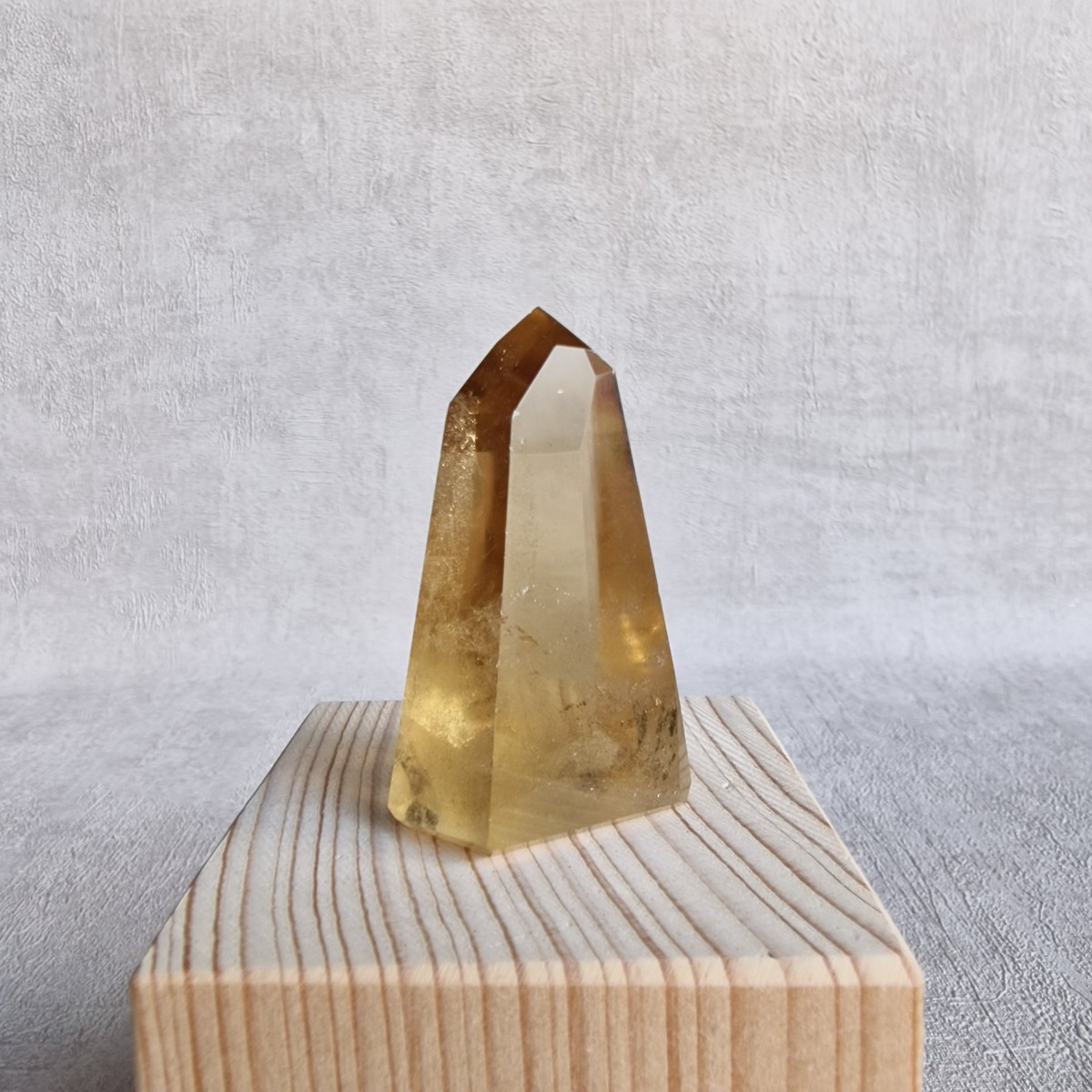 Pointe taillée de citrine naturelle. Lithothérapie : cristal d'abondance, la citrine enseigne comment attirer les richesses matérielles et spirituelles.(PT40-8)