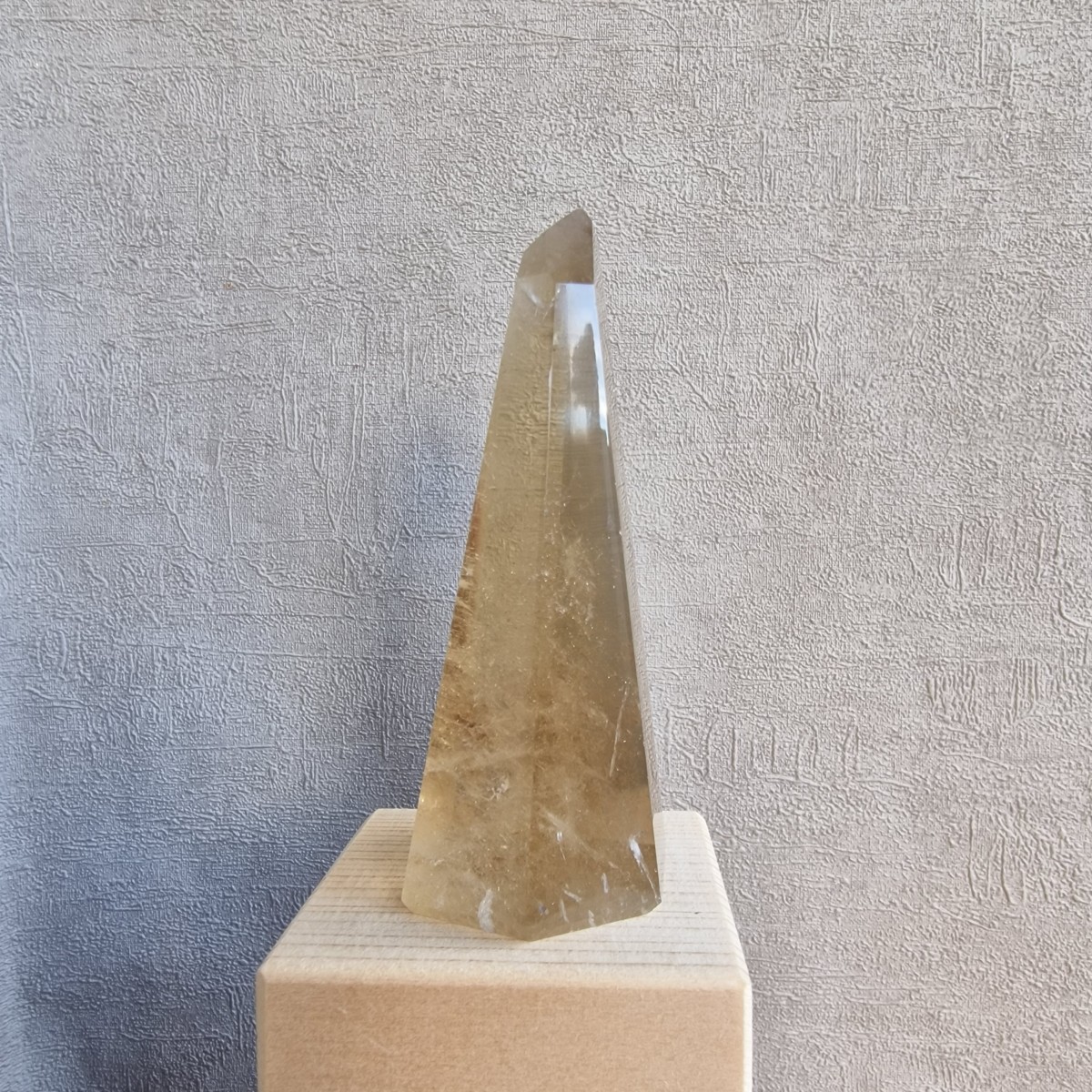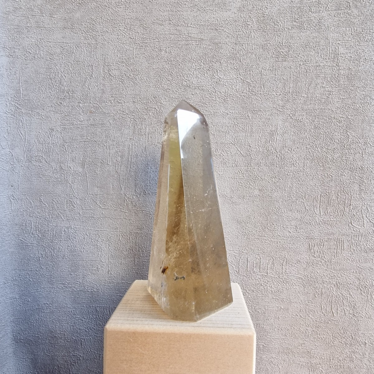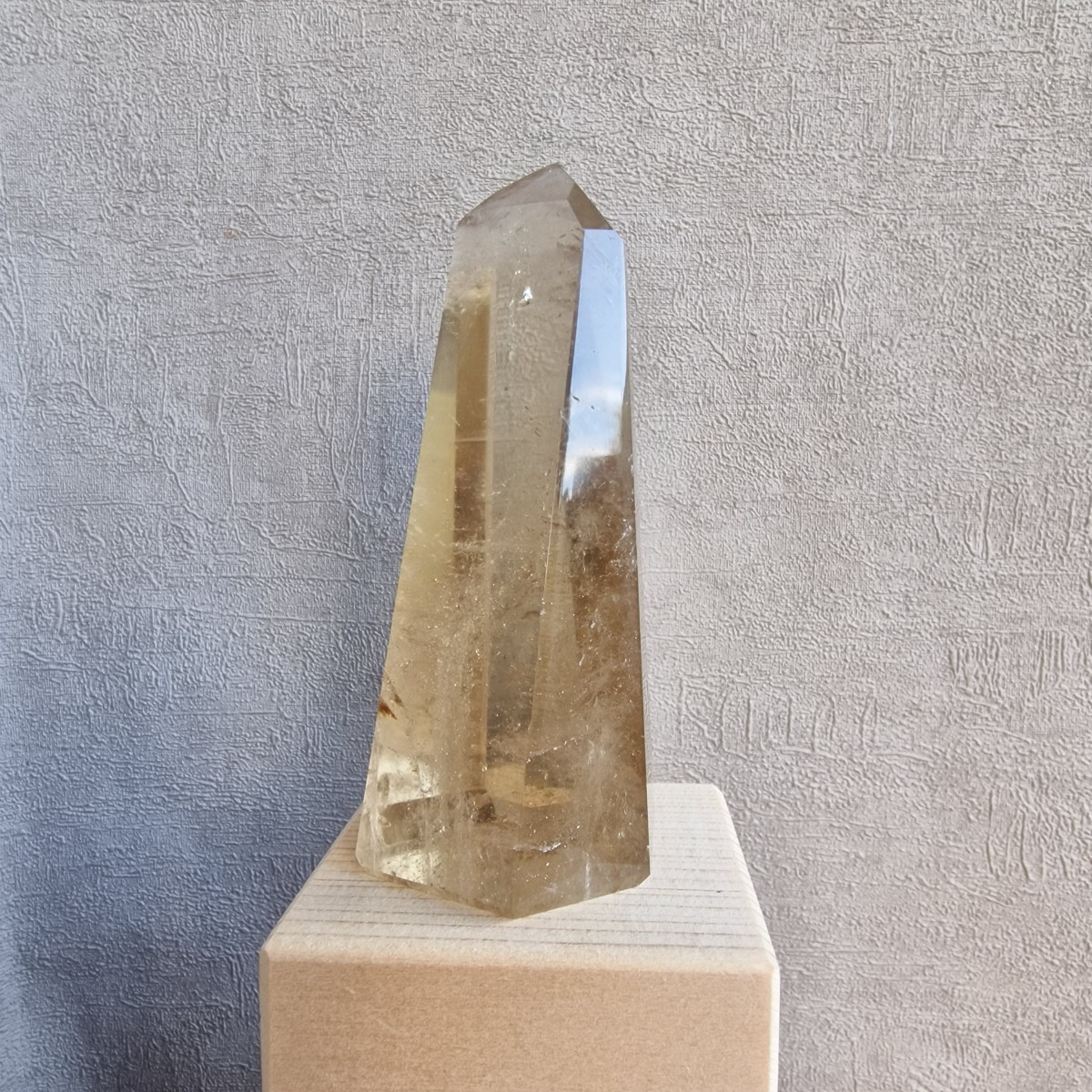 Pointe taillée de citrine naturelle. Lithothérapie : cristal d'abondance, la citrine enseigne comment attirer les richesses matérielles et spirituelles.(PT40-14)