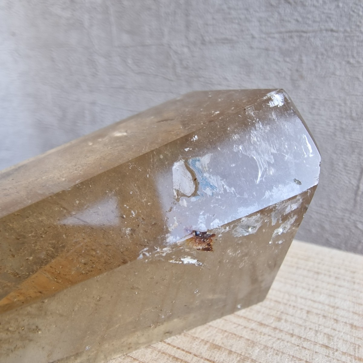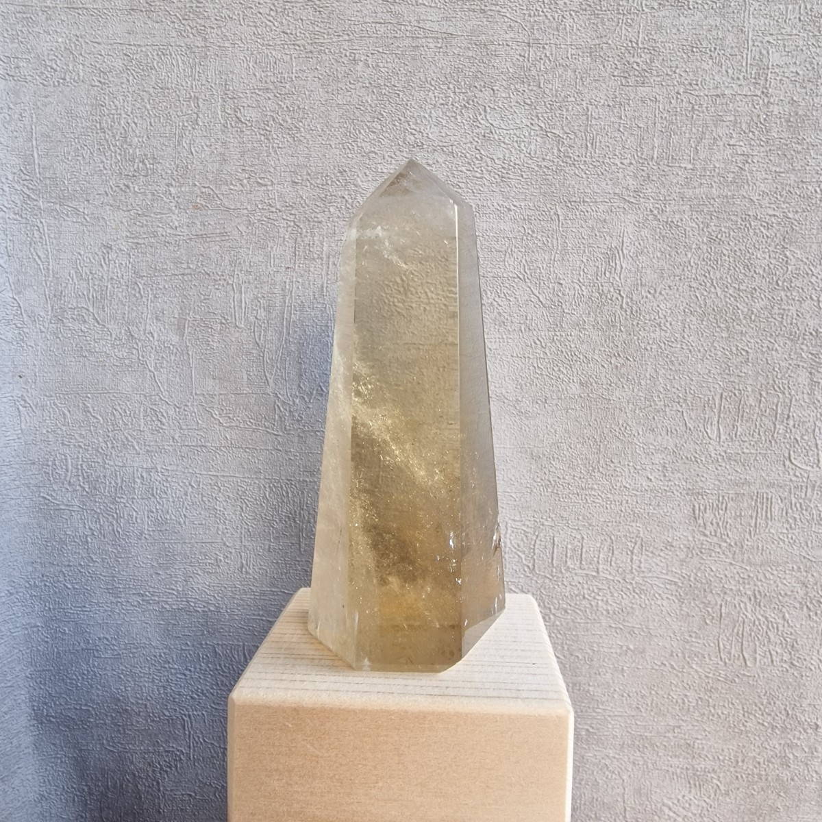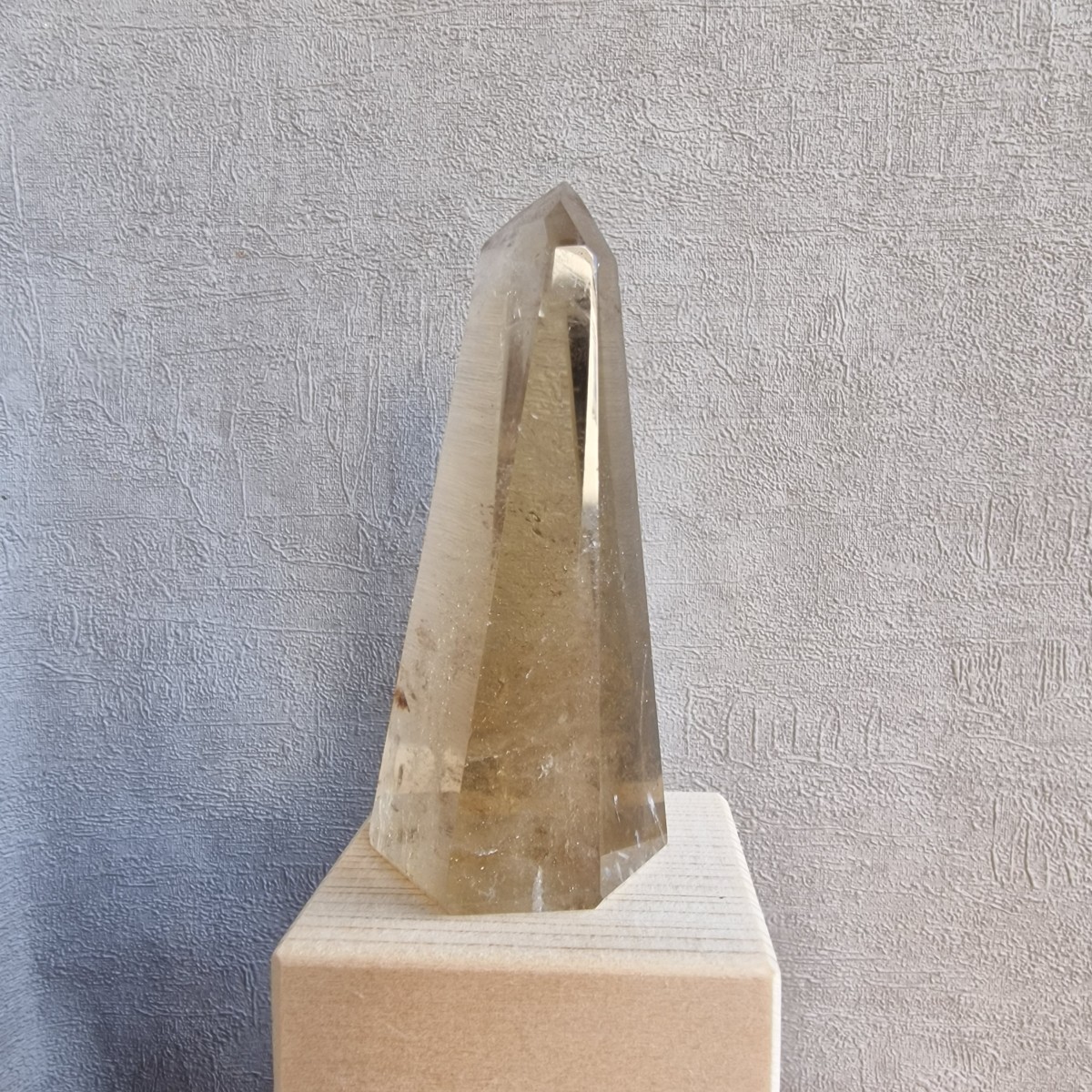 Pointe taillée de citrine naturelle. Lithothérapie : cristal d'abondance, la citrine enseigne comment attirer les richesses matérielles et spirituelles.(PT40-14)