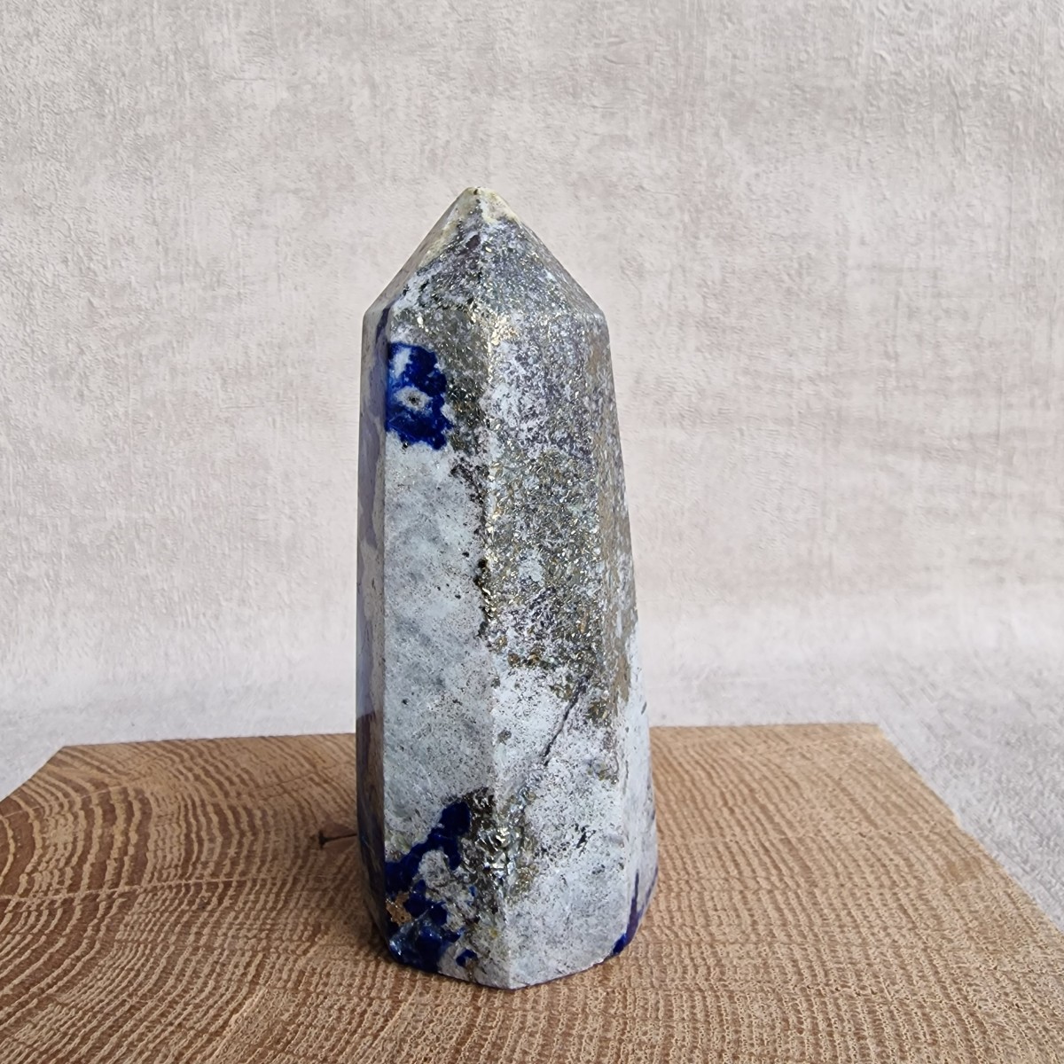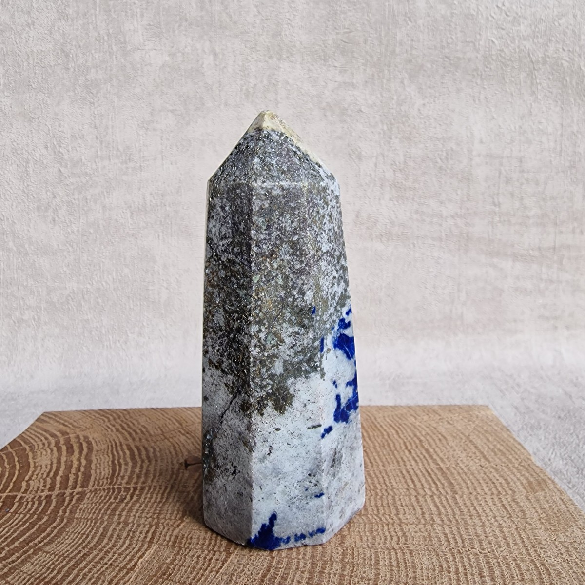 Obélisque en Afghanite. Lithothérapie : pierre d'introspection, elle nous aide à porter un regard neuf sur notre ressenti et notre relation avec les autres.(OB10-1)
