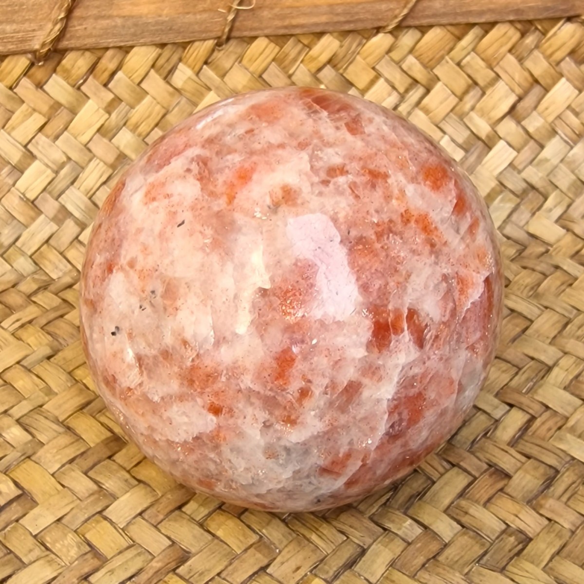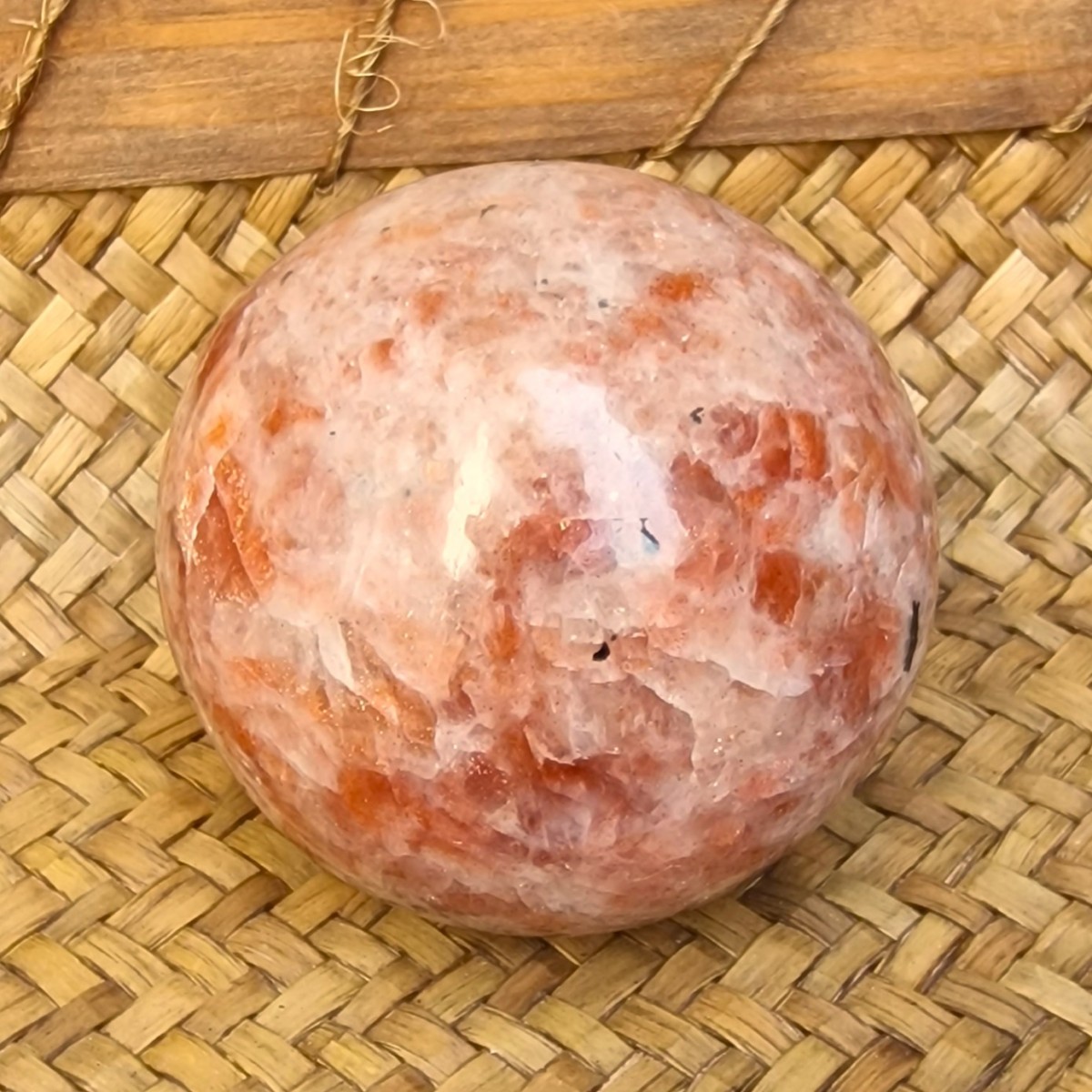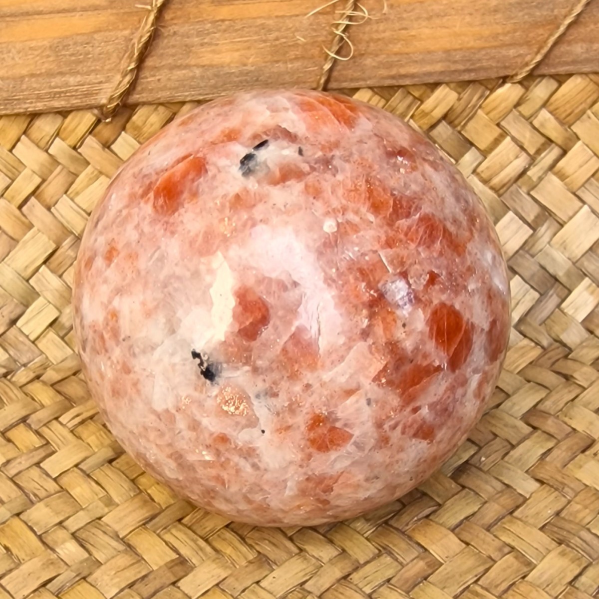 Sphère pierre de soleil/héliolite. Lithothérapie : aide à adopter une vision plus positive de soi, à sortir de la stagnation et du pessimisme, réveille la créativité.(SP107-7)