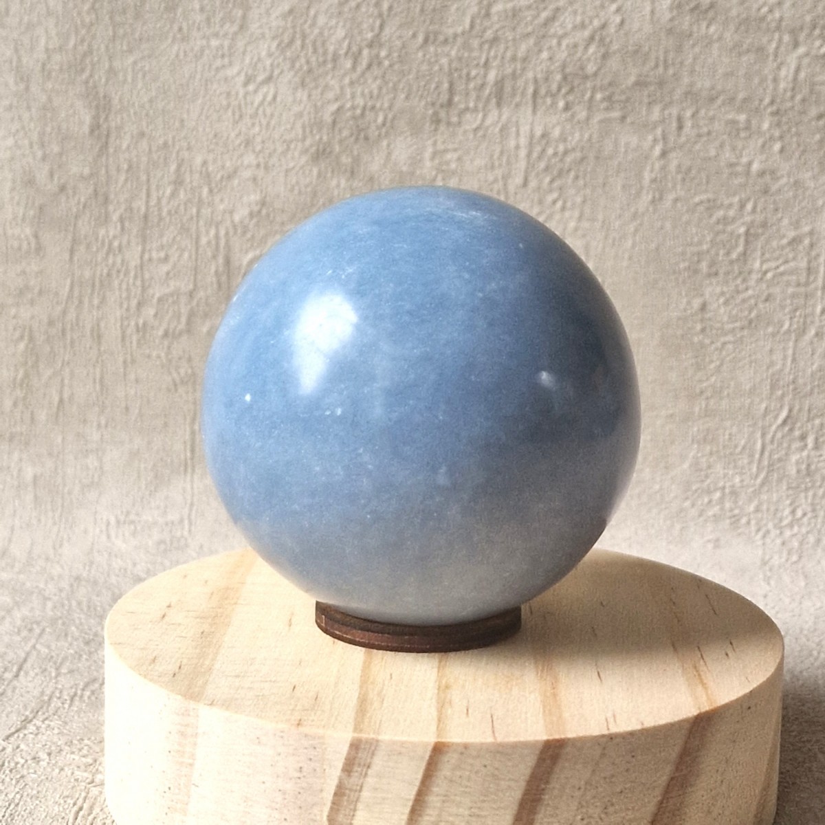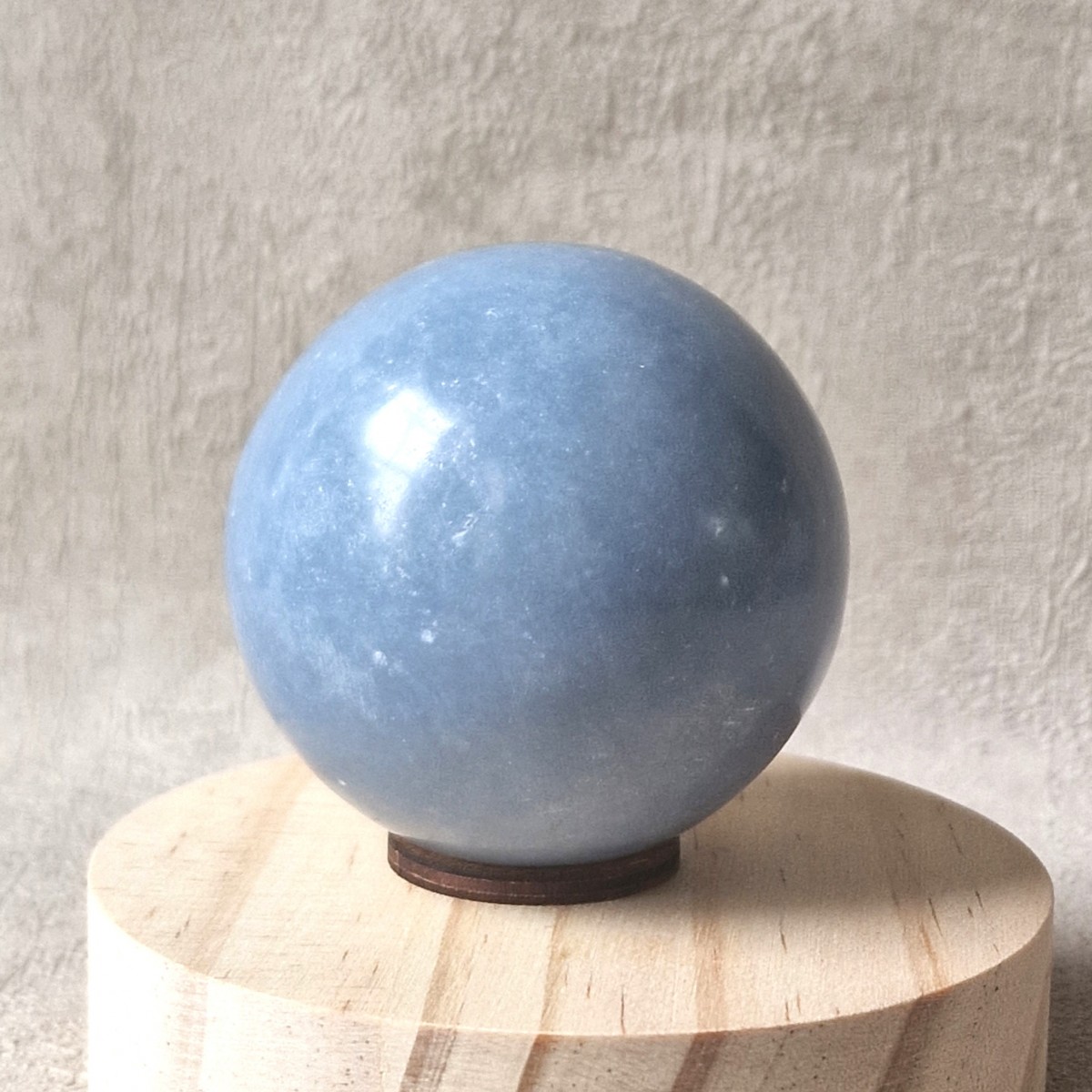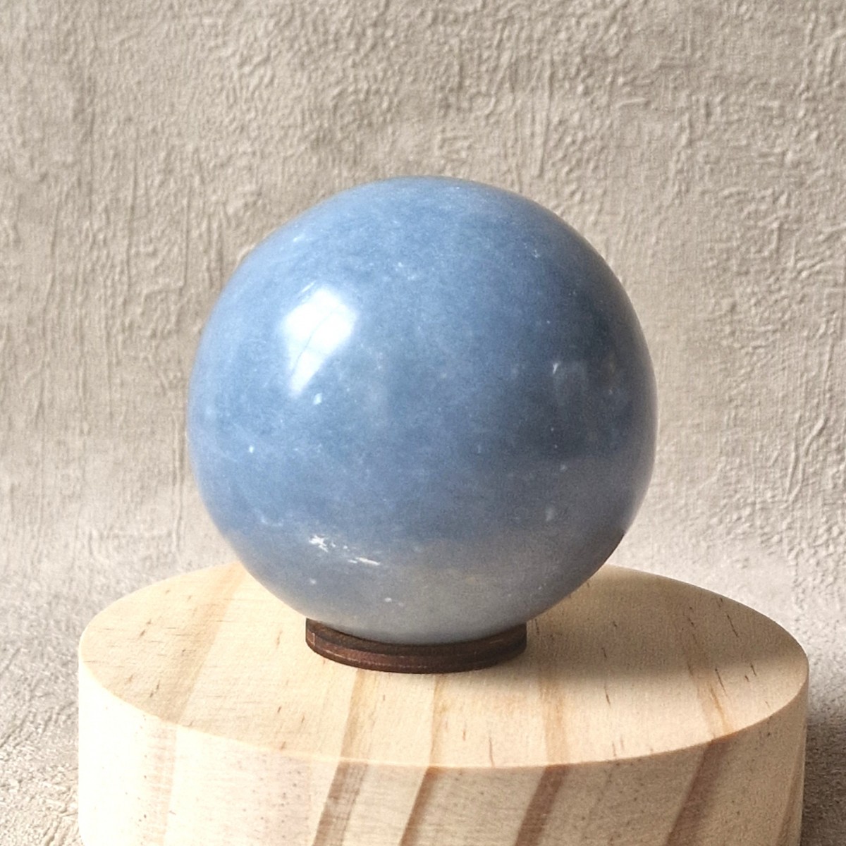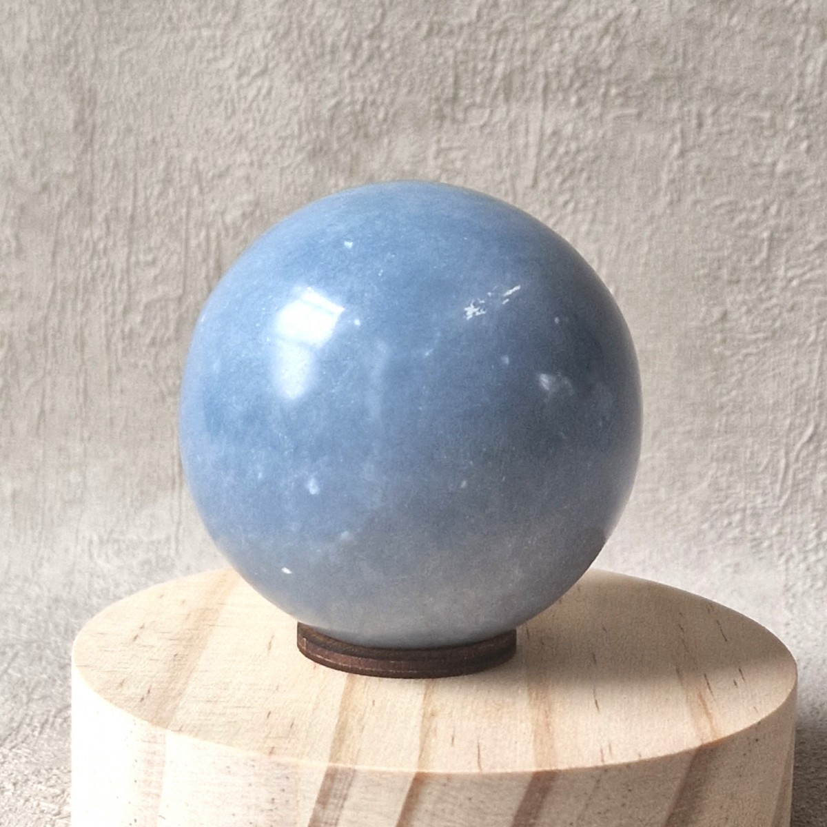Sphère d'angélite. Lithothérapie : pierre de communication avec nos Guides, l'angélite aide à percevoir et décoder les signes.(SP121-3)