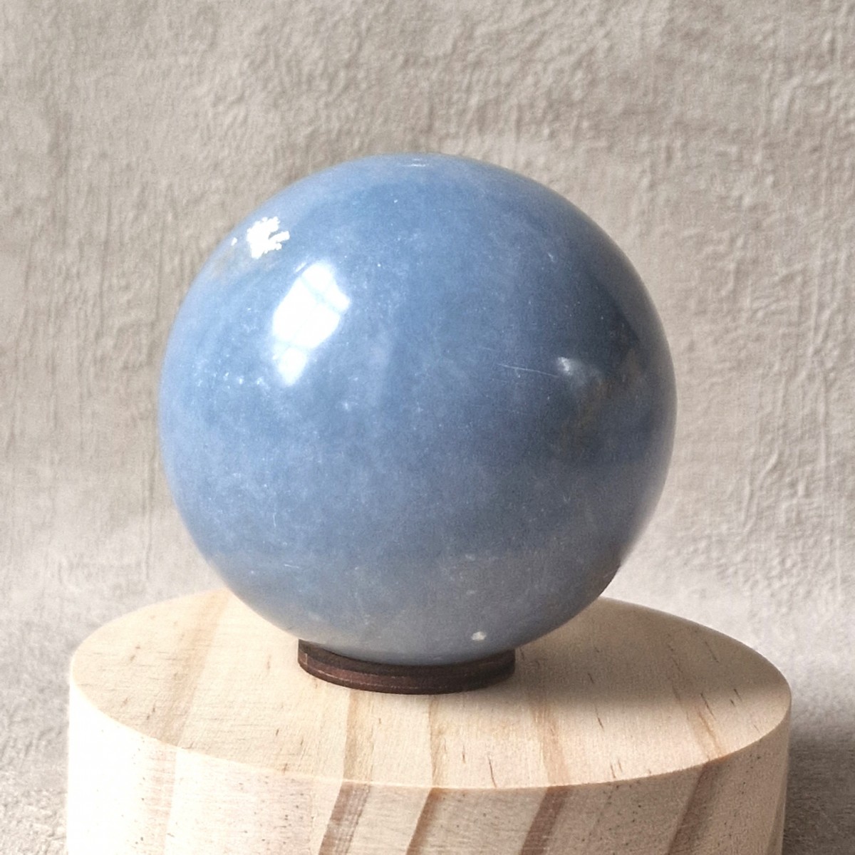 Sphère d'angélite. Lithothérapie : pierre de communication avec nos Guides, l'angélite aide à percevoir et décoder les signes.(SP121-4)