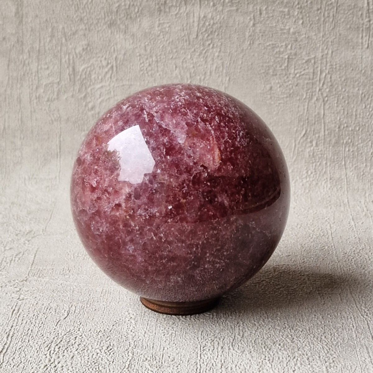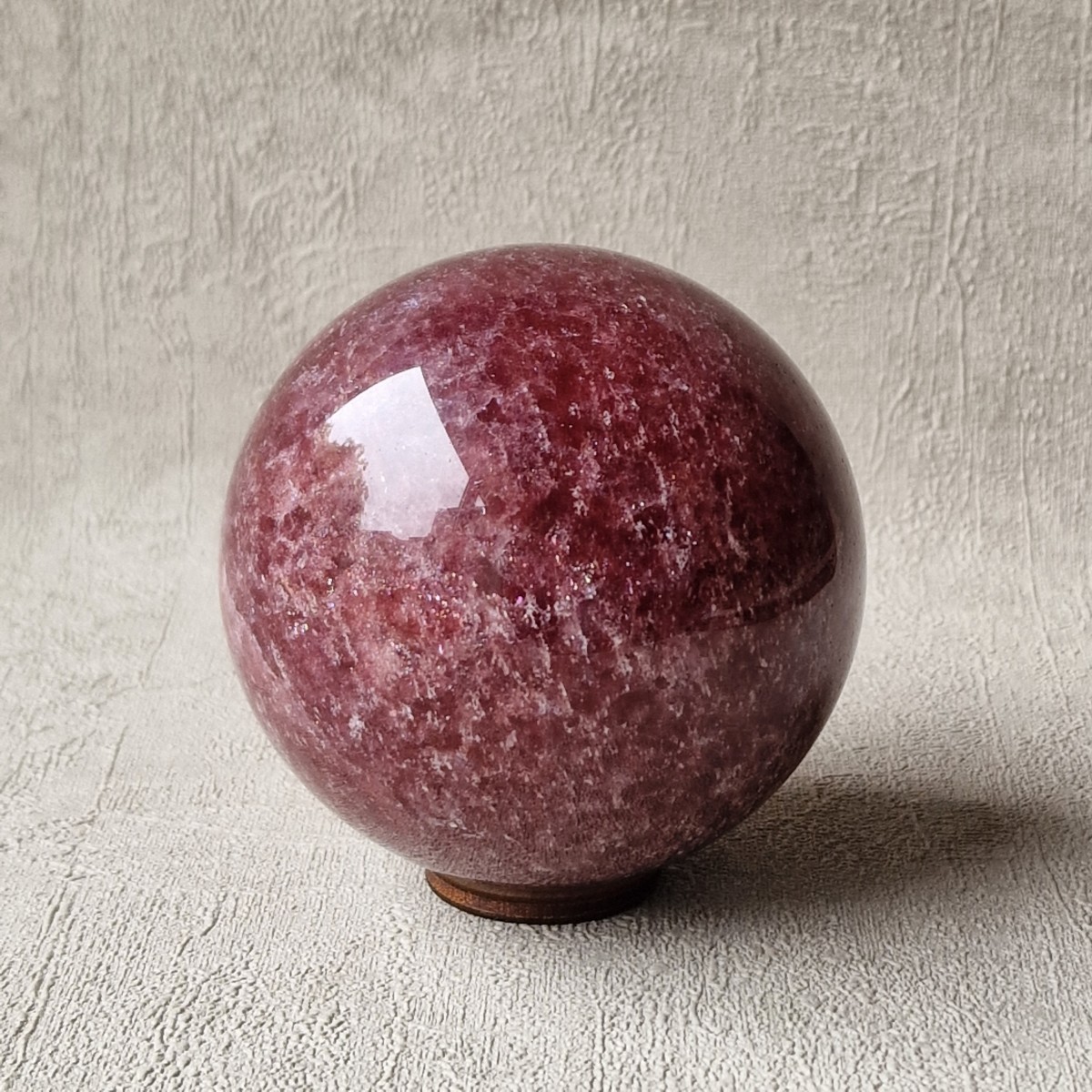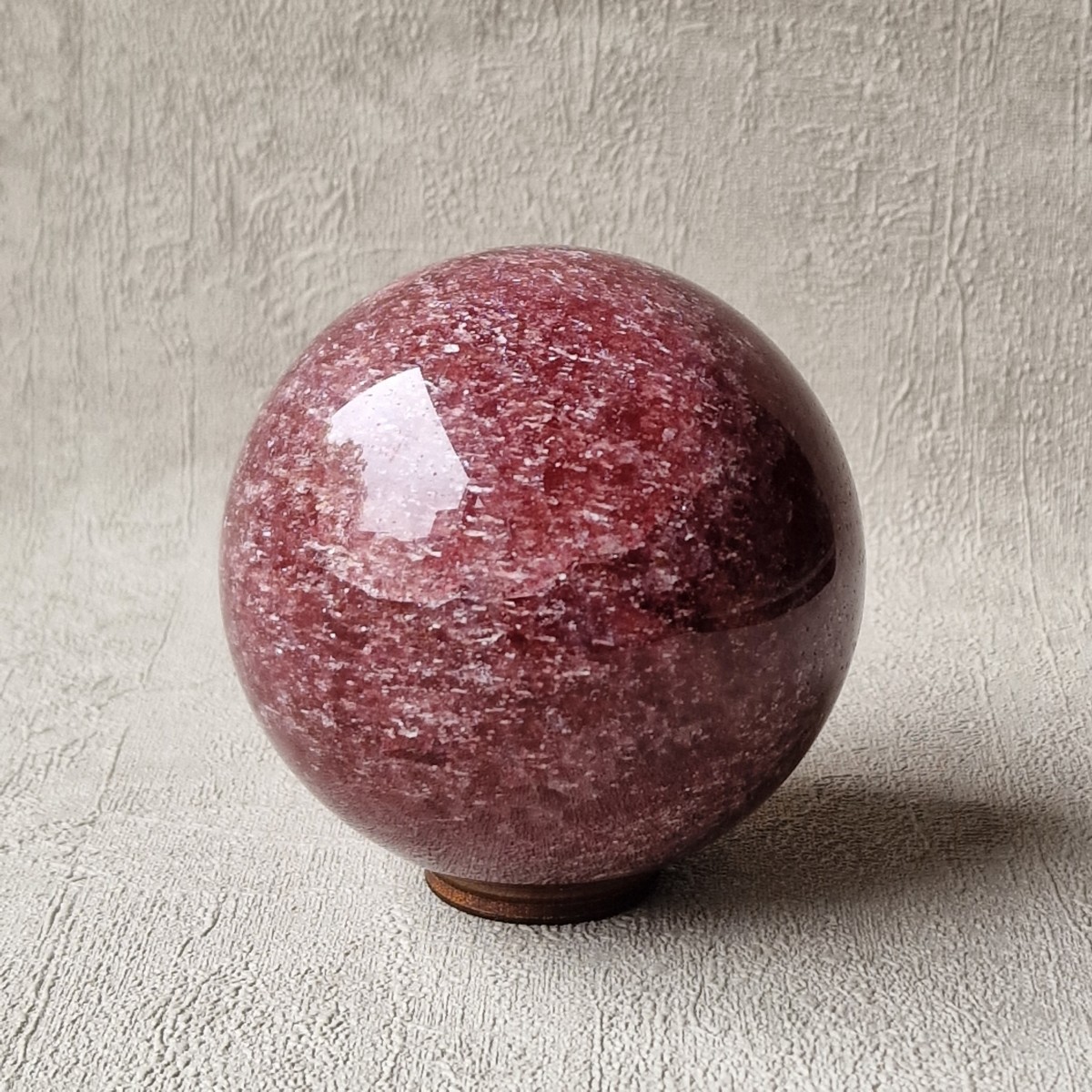 Sphère en aventurine rouge-rose de Tanzanie, de +/- 6,5 cm. Lithothérapie : restaure l'optimisme, libère la créativité, améliore la résistance physique.(SP115-3)